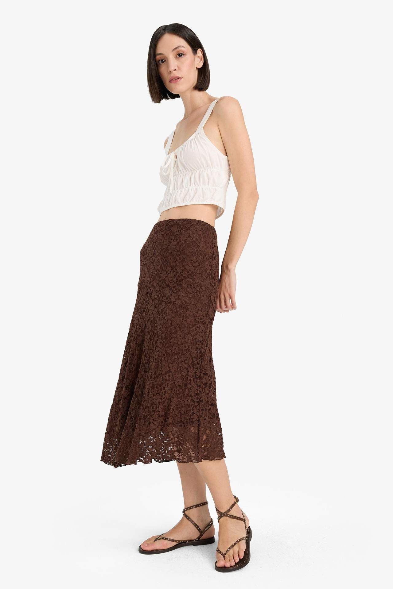 A kesim normal bel dantel midi etek, zarif ve feminen bir şıklık sunar. İnce dantel detayıyla klasik bir dokunuş katarken, A kesim ve hafif kumaşıyla rahat bir kullanım sağlar. Hem günlük hem özel kombinler için ideal bir parçadır. Elastan 1%,Poliester 99%,Poliester 100%,Elastan 1%,Poliester 99%,Poliester 100%,Elastan 1%,Poliester 99%,Poliester 100%,Elastan 1%,Poliester 99%,Poliester 100%,Elastan 1%,Poliester 99%,Poliester 100%