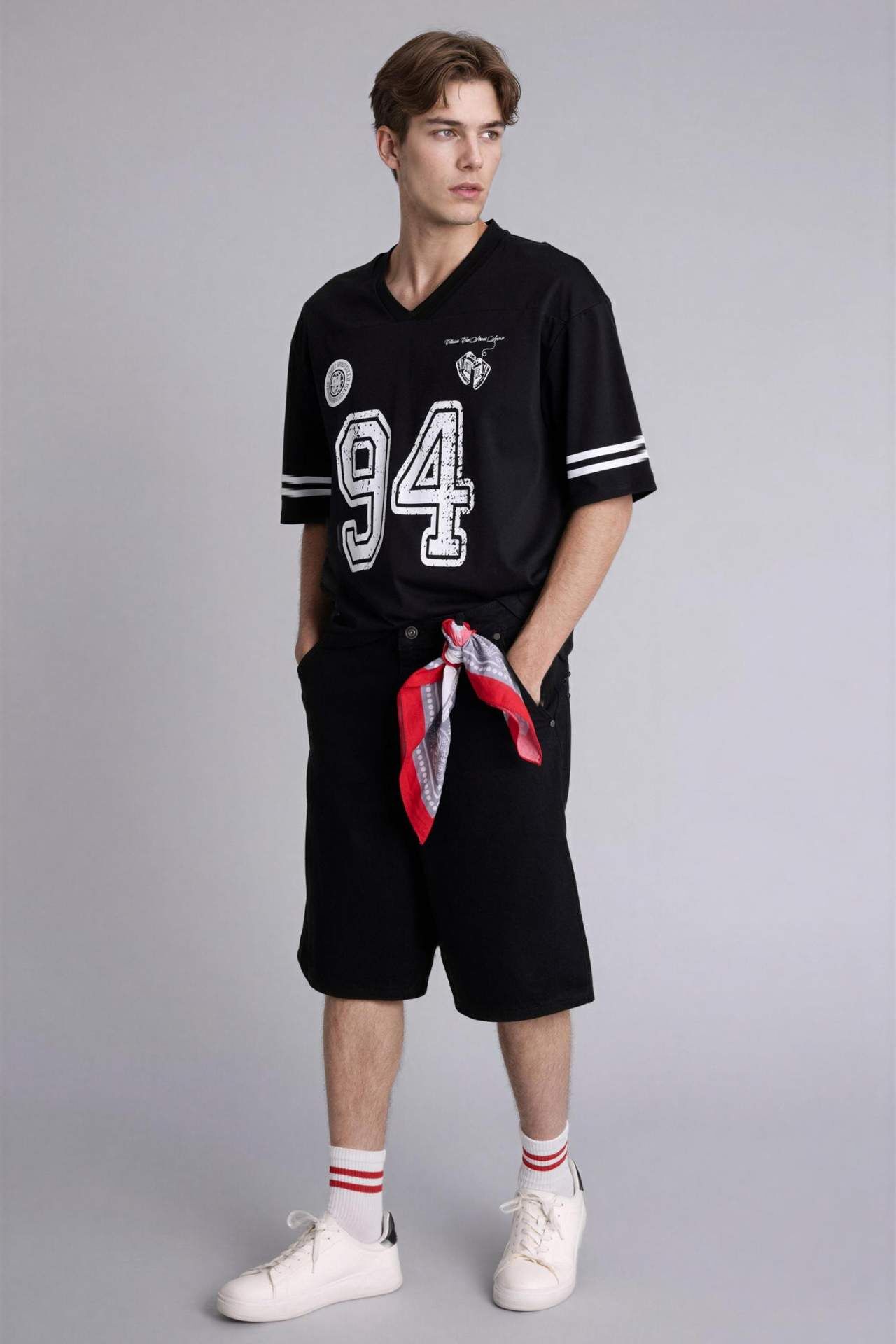 Modern ve oldukça geniş bir silüet sunan Baggy Fit kesimiyle üstün konforu şıklıkla birleştirir. Bermuda boyunun sağladığı ideal koruma ve bol kalıbının kazandırdığı maksimum hareket özgürlüğü, güncel sokak stiline uyumlu dökümlü yapısıyla sıcak havalarda hem özgür hem de iddialı bir kullanım sunar. Pamuk 100% Manken Bedeni: Göğüs: 96 Boy: 1,81 Basen: 95 Bel: 75