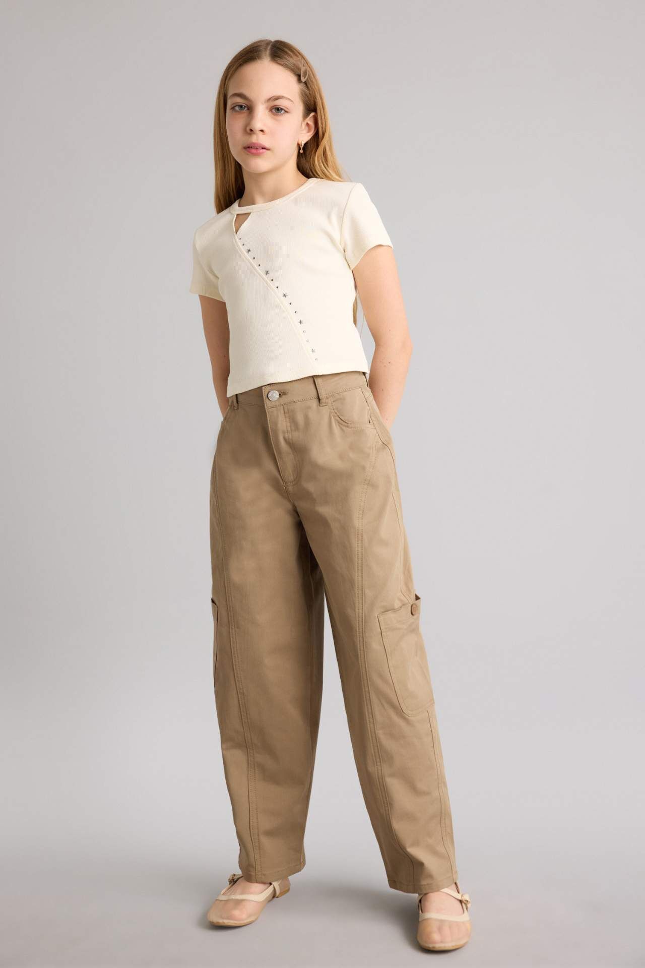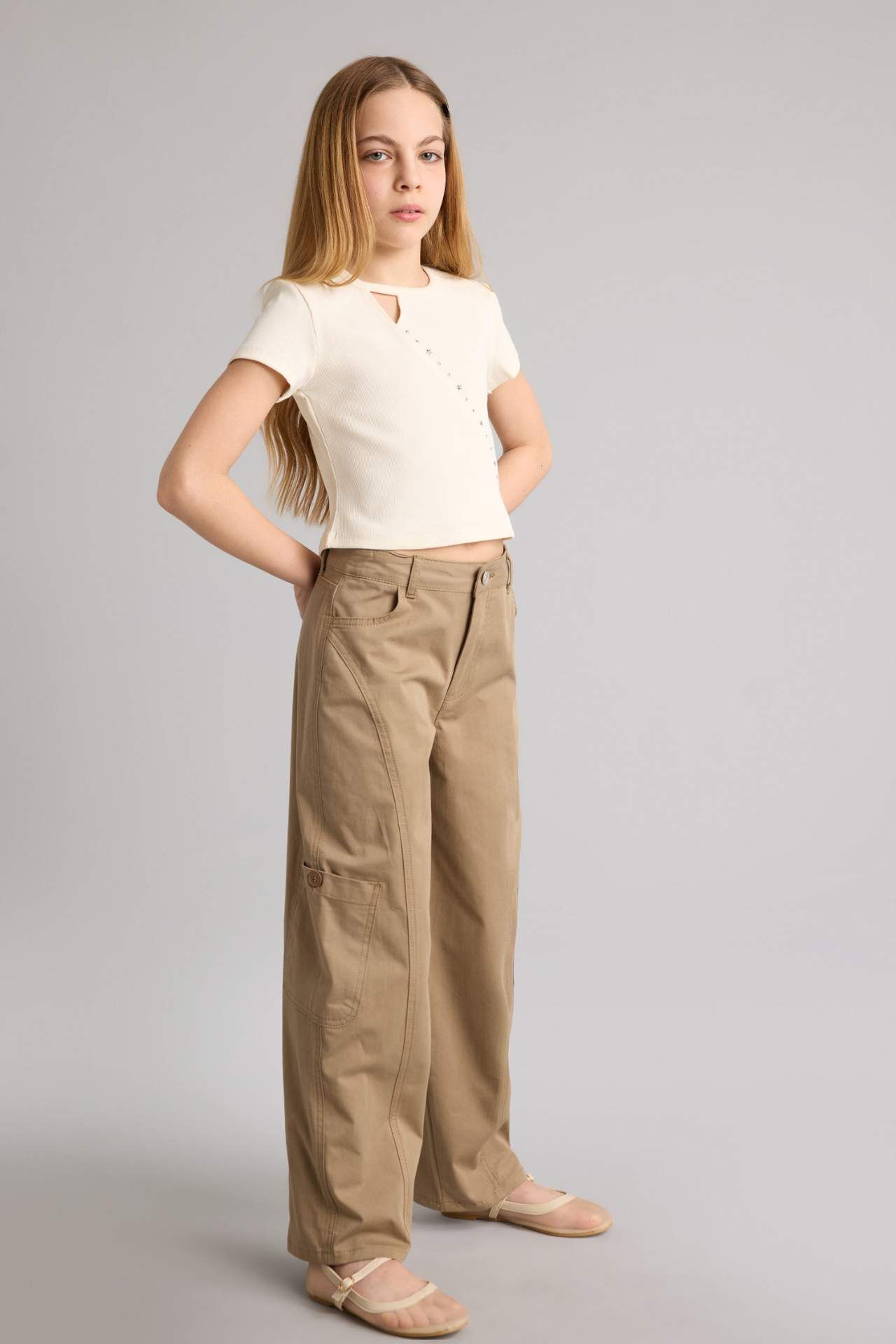 Baggy Fıt Geniş Paça Gabardin Pantolon Kız Çocuk