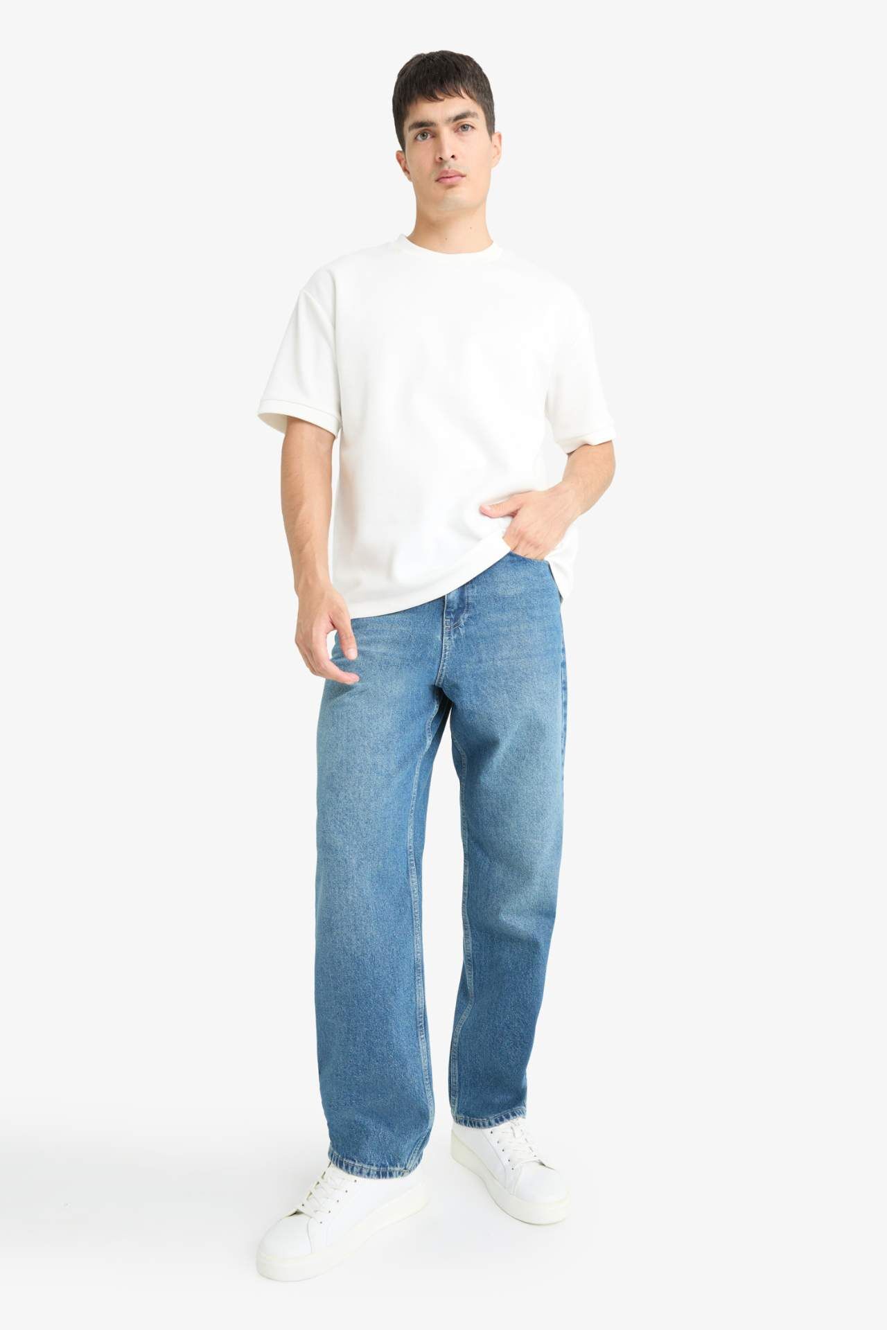 Baggy Fit Geniş Paça Jean Pantolon, rahat kesimi ve geniş paçalarıyla özgür hareket imkanı sunar. Modern tarzıyla sokak modasının favori parçalarından biridir. Pamuk 100%,Pamuk 100%,Pamuk 100%,Pamuk 100%,Pamuk 100%,Pamuk 100%,Pamuk 100% Manken Bedeni: Göğüs: 93 Boy: 1,85 Basen: 97 Bel: 87