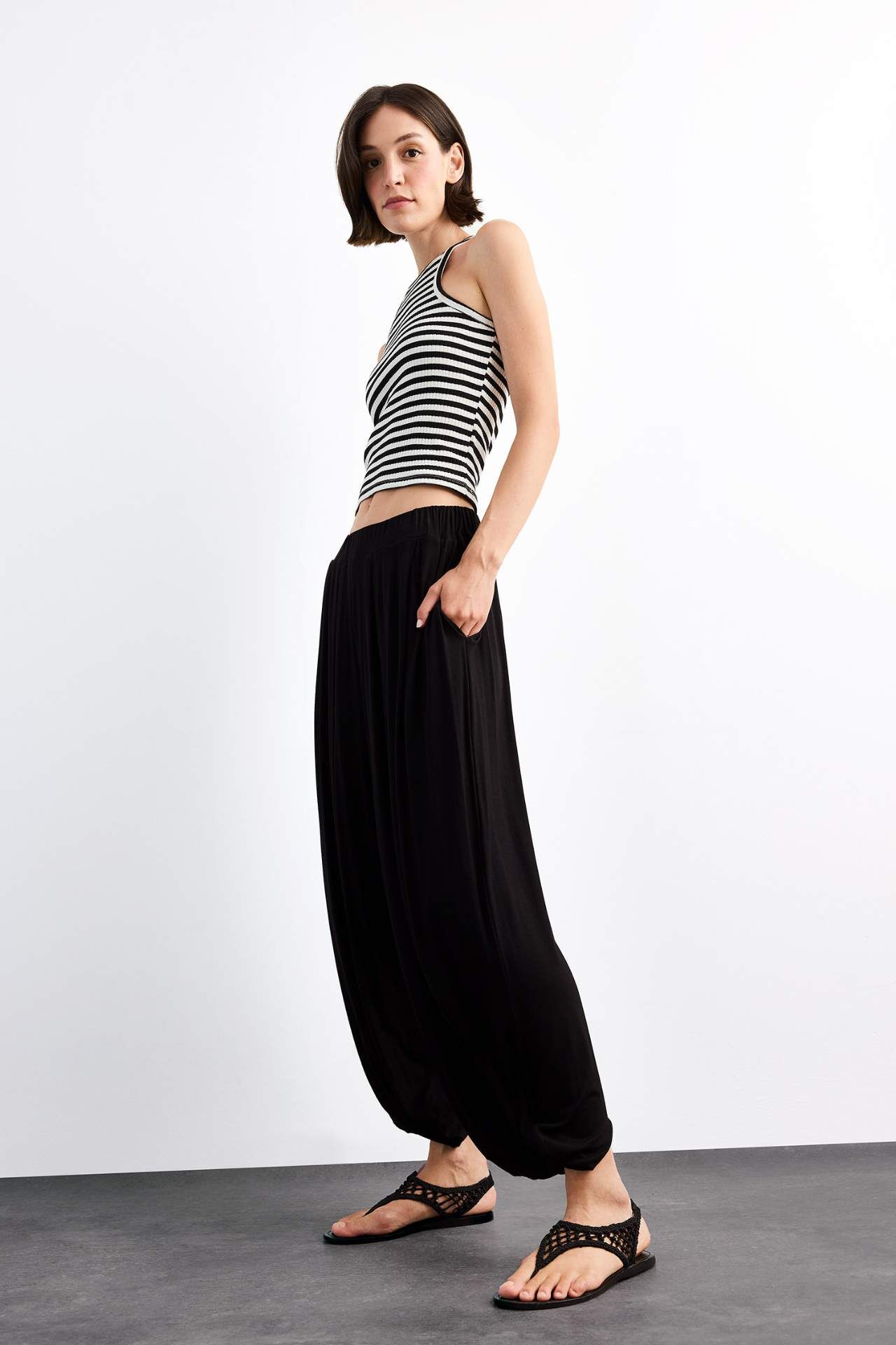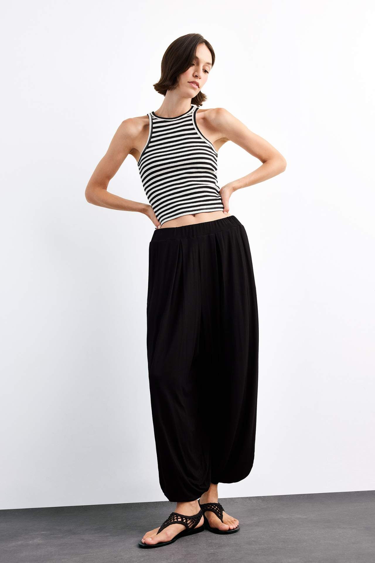 DeFacto Baggy Fit Normal Bel Jogger Paça Bilek Boy Modal Pantolon G0671AX25SMBK81