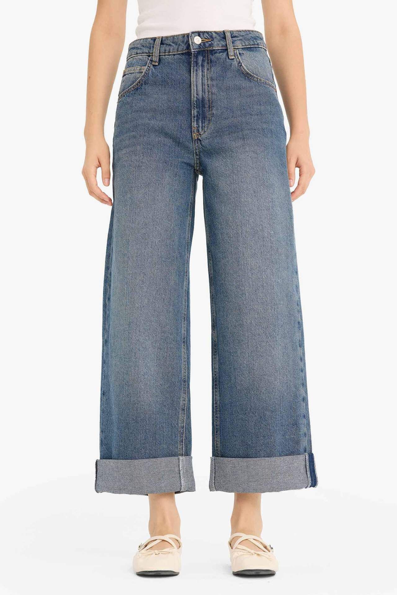 DeFacto Baggy Fit Yüksek Bel Katlamalı Paça Jean Pantolon
