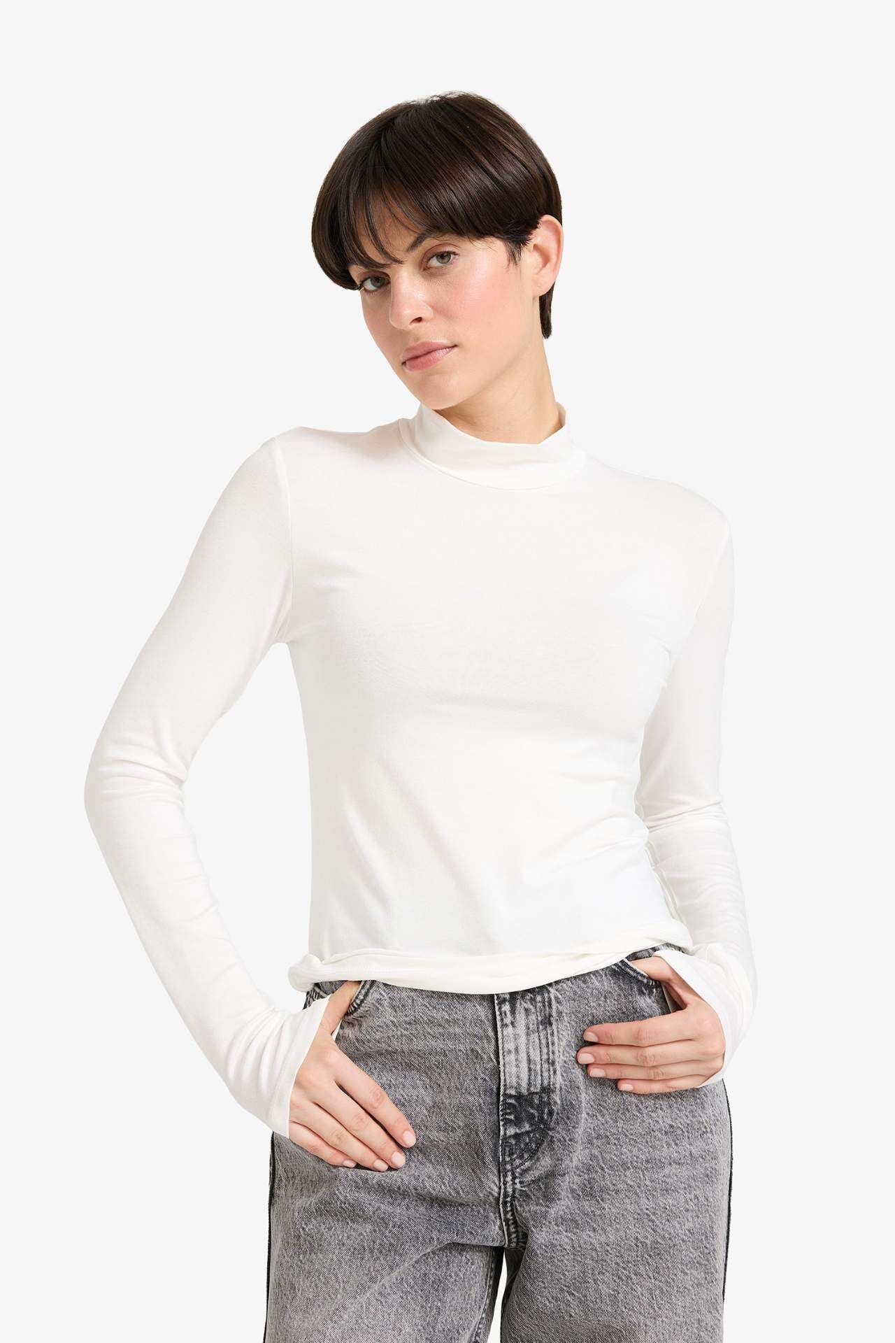 Balıkçı Yaka Uzun Kollu Tişört