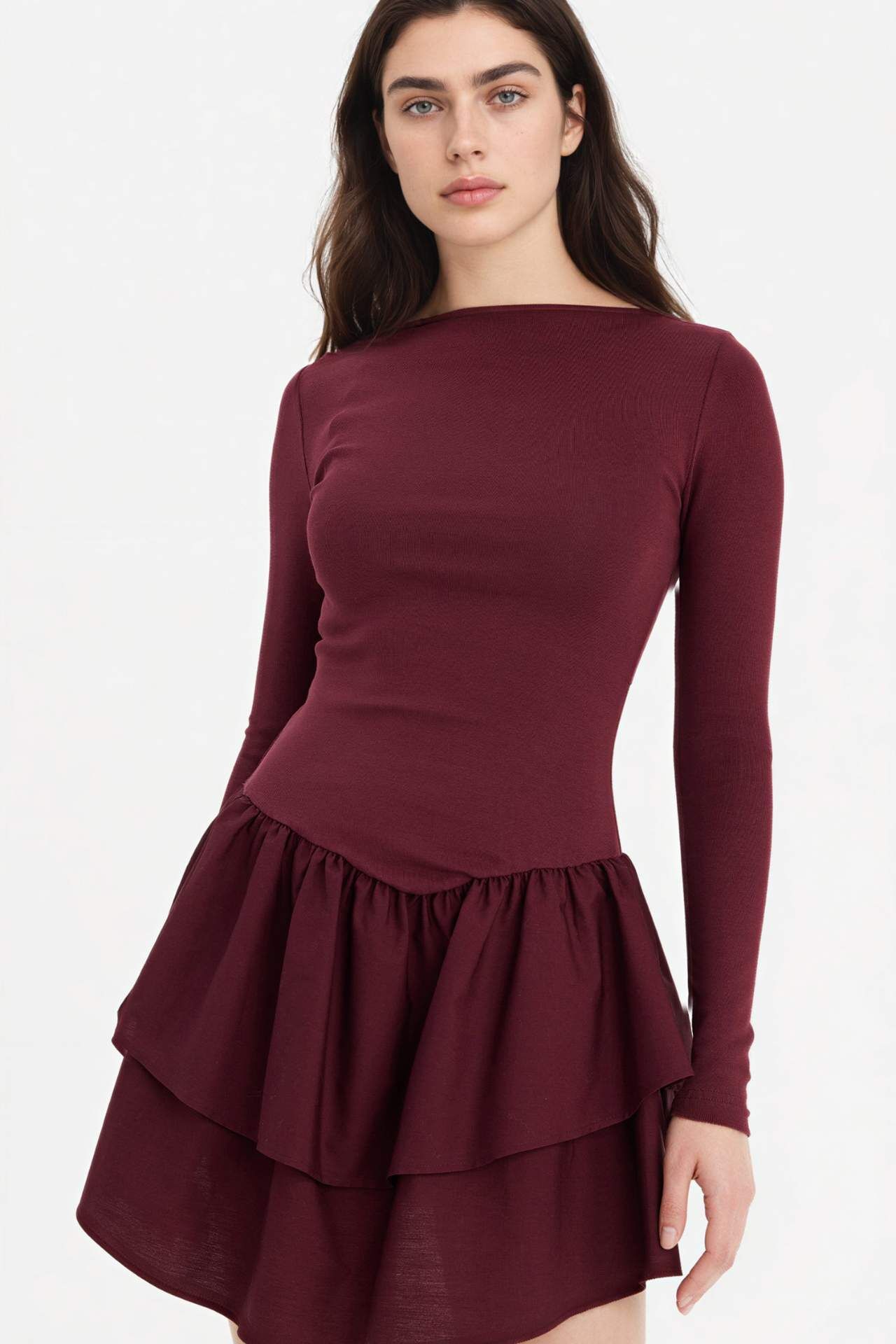 Balloon Fıt Bisiklet Yaka Ribana Uzun Kollu Mini Elbise