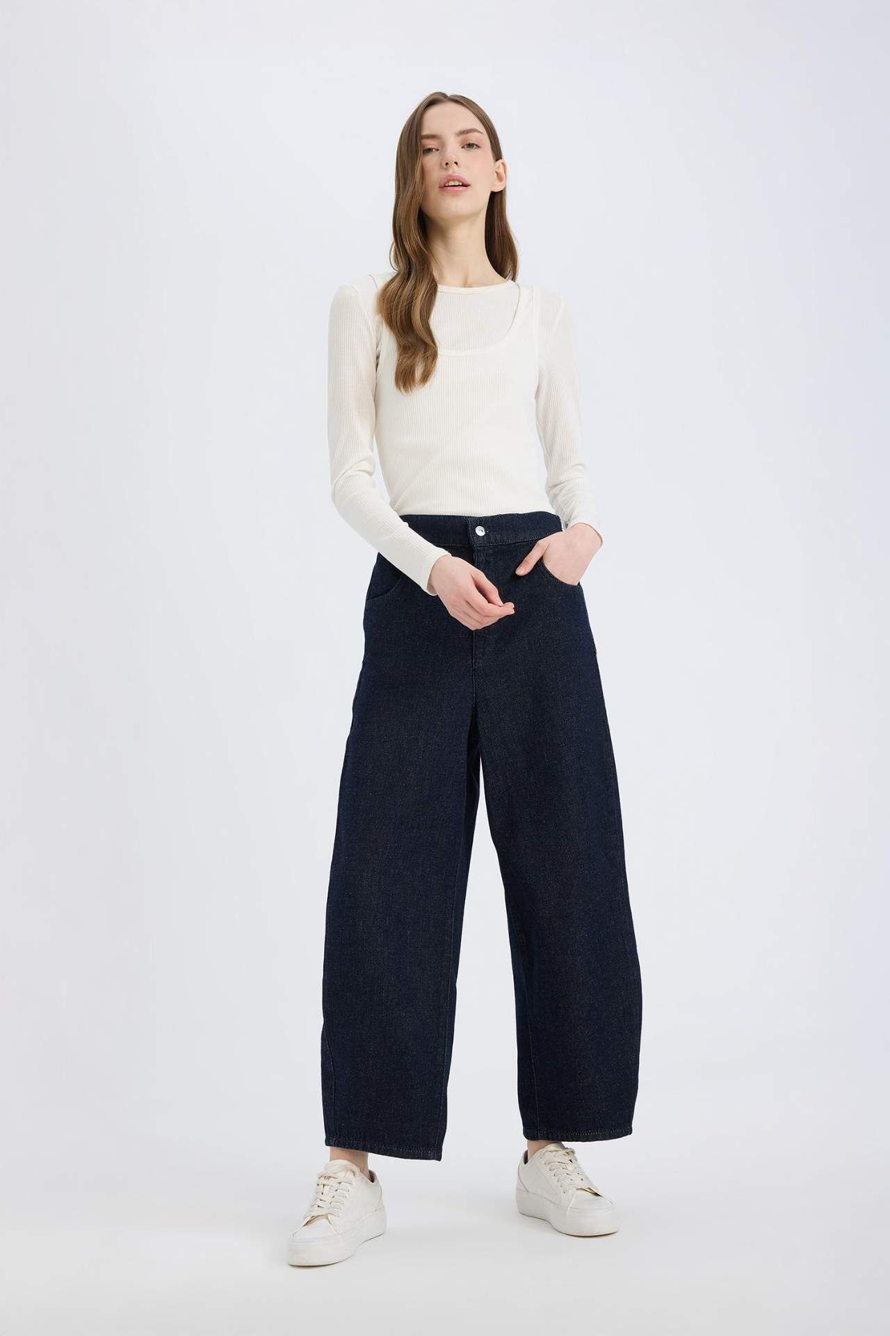 DeFacto Barrel Fit Beli Lastikli Bilek Boy Cepli Yumuşak Jean Pantolon