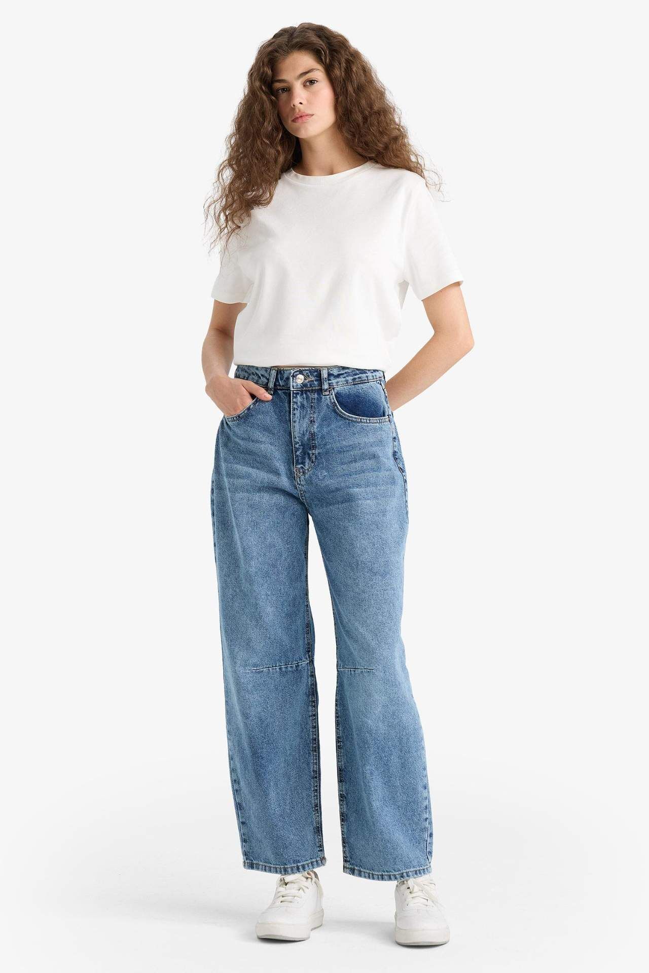 DeFacto Barrel Fit Normal Bel Bilek Boy Jean Yıkamalı Pantolon F6102AX25HSNM28
