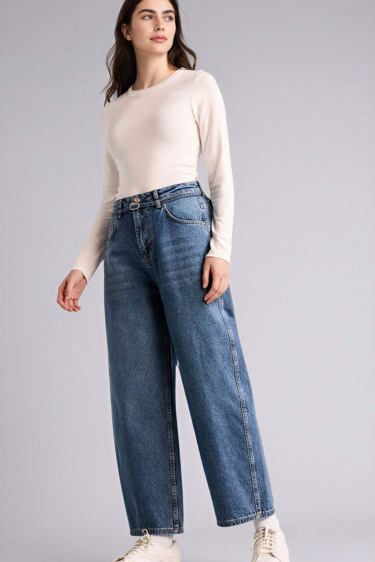 Barrel Fıt Normal Bel Bilek Boy Jean Yıkamalı Pantolon