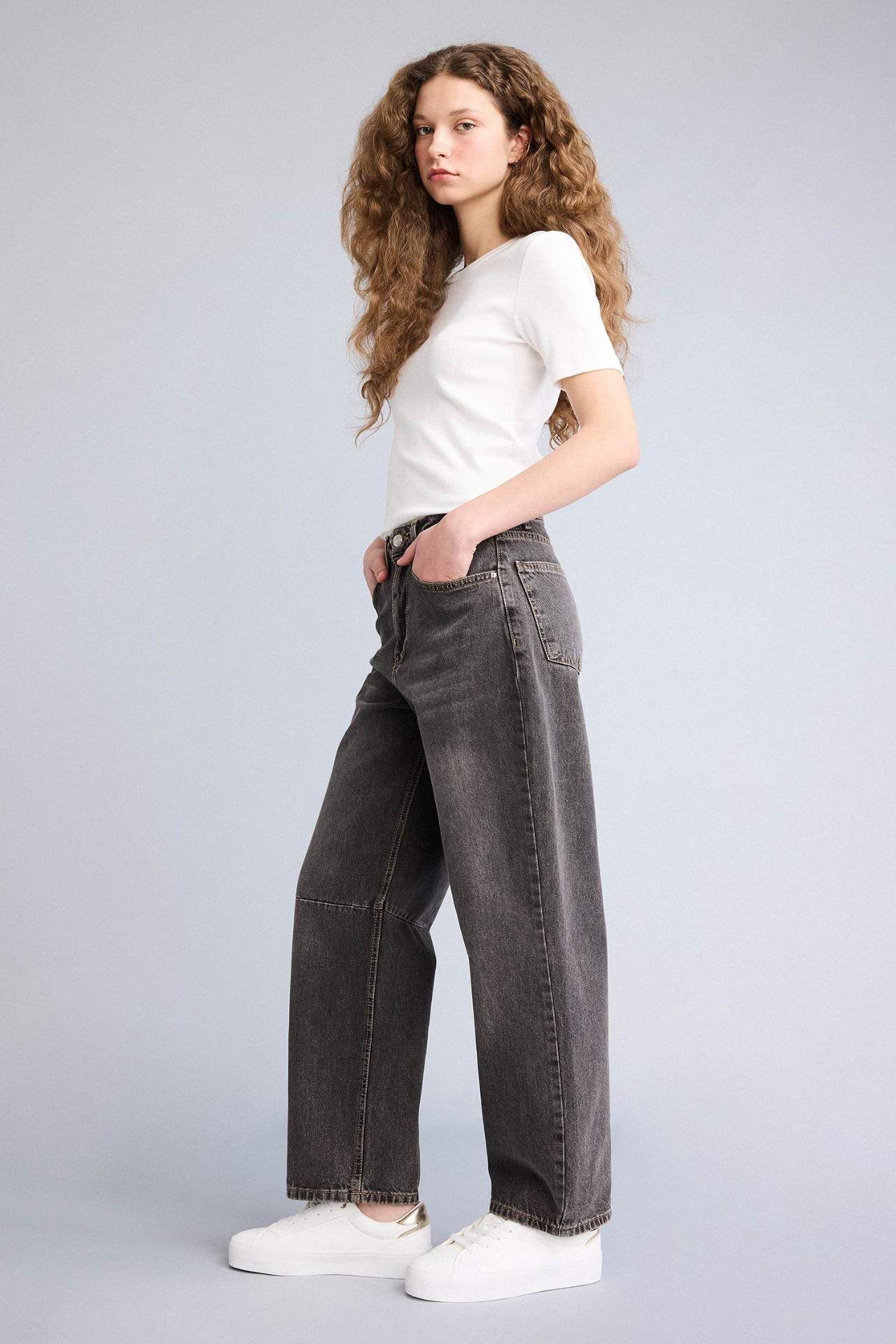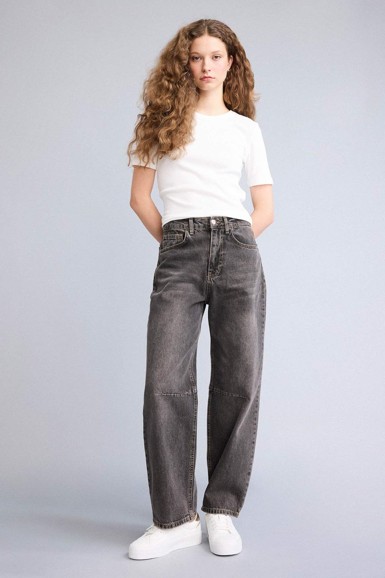 Barrel Fıt Yüksek Bel Bilek Boy Jean Yıkamalı Pantolon