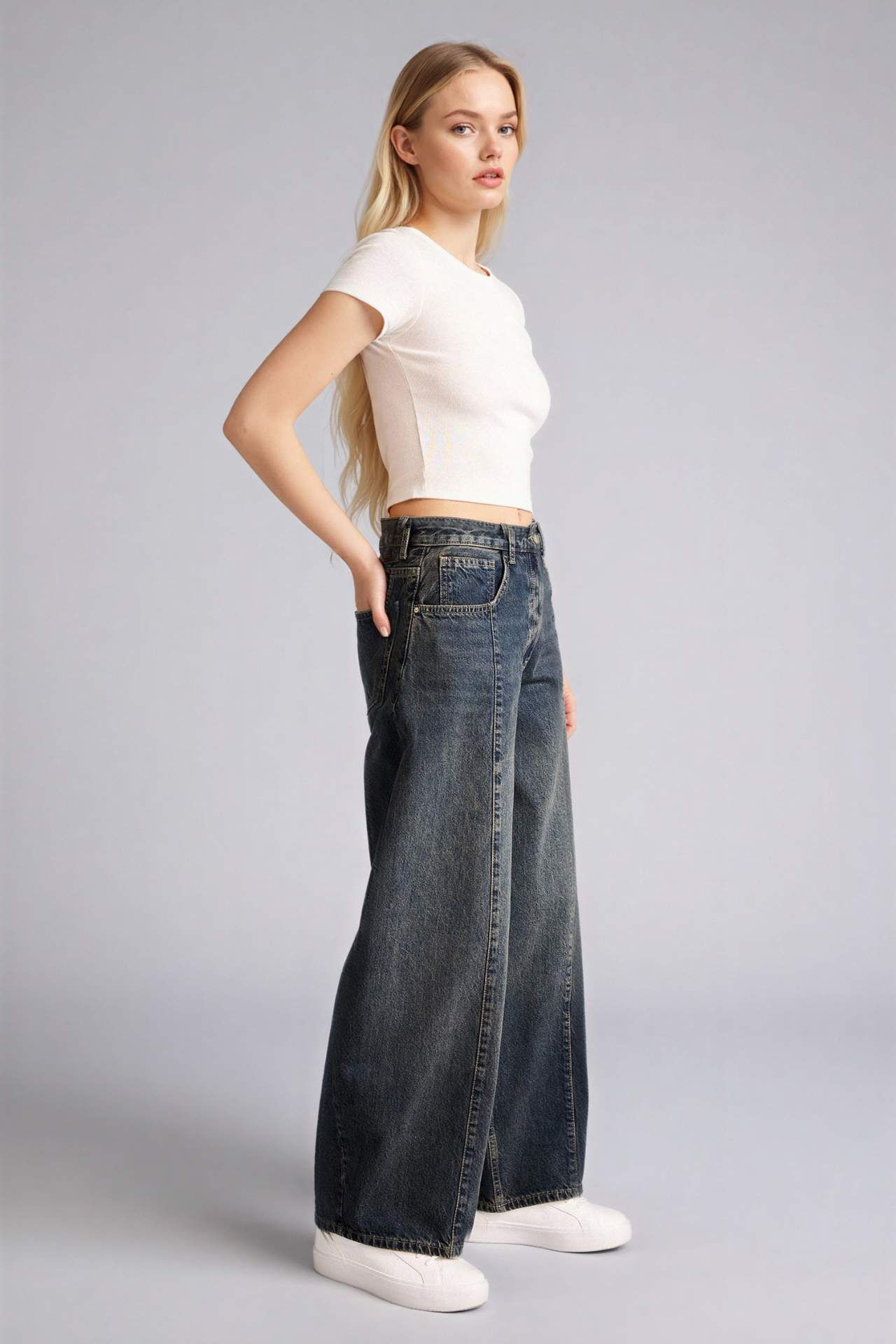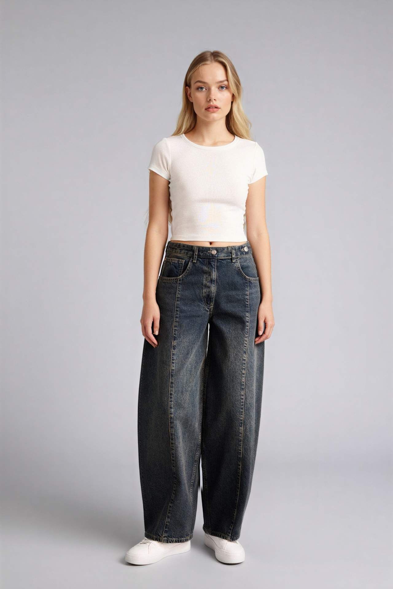 Barrel Fıt Yüksek Bel Bilek Boy Jean Yıkamalı Pantolon