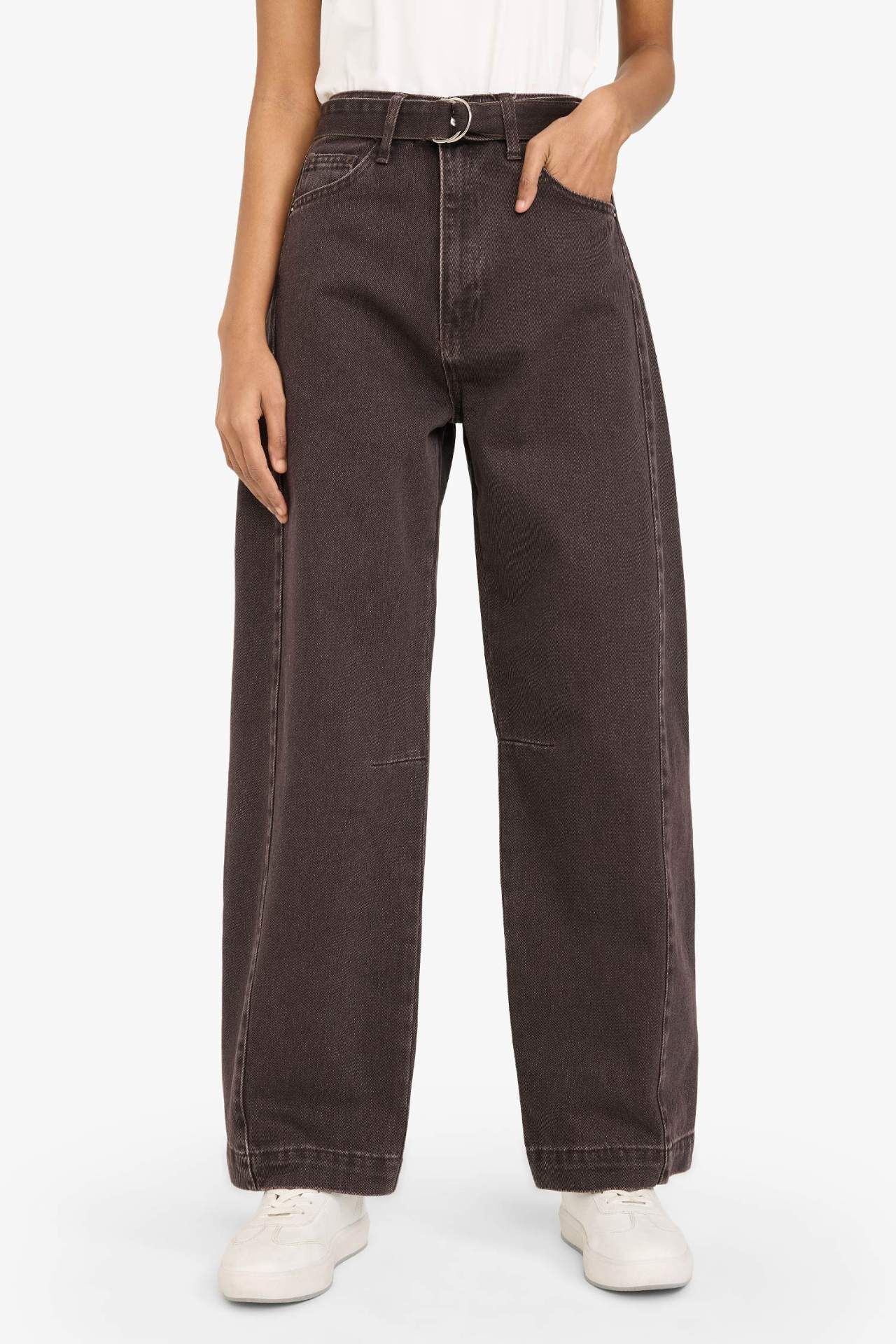 Barrel Fit Yüksek Bel Uzun Jean Pantolon