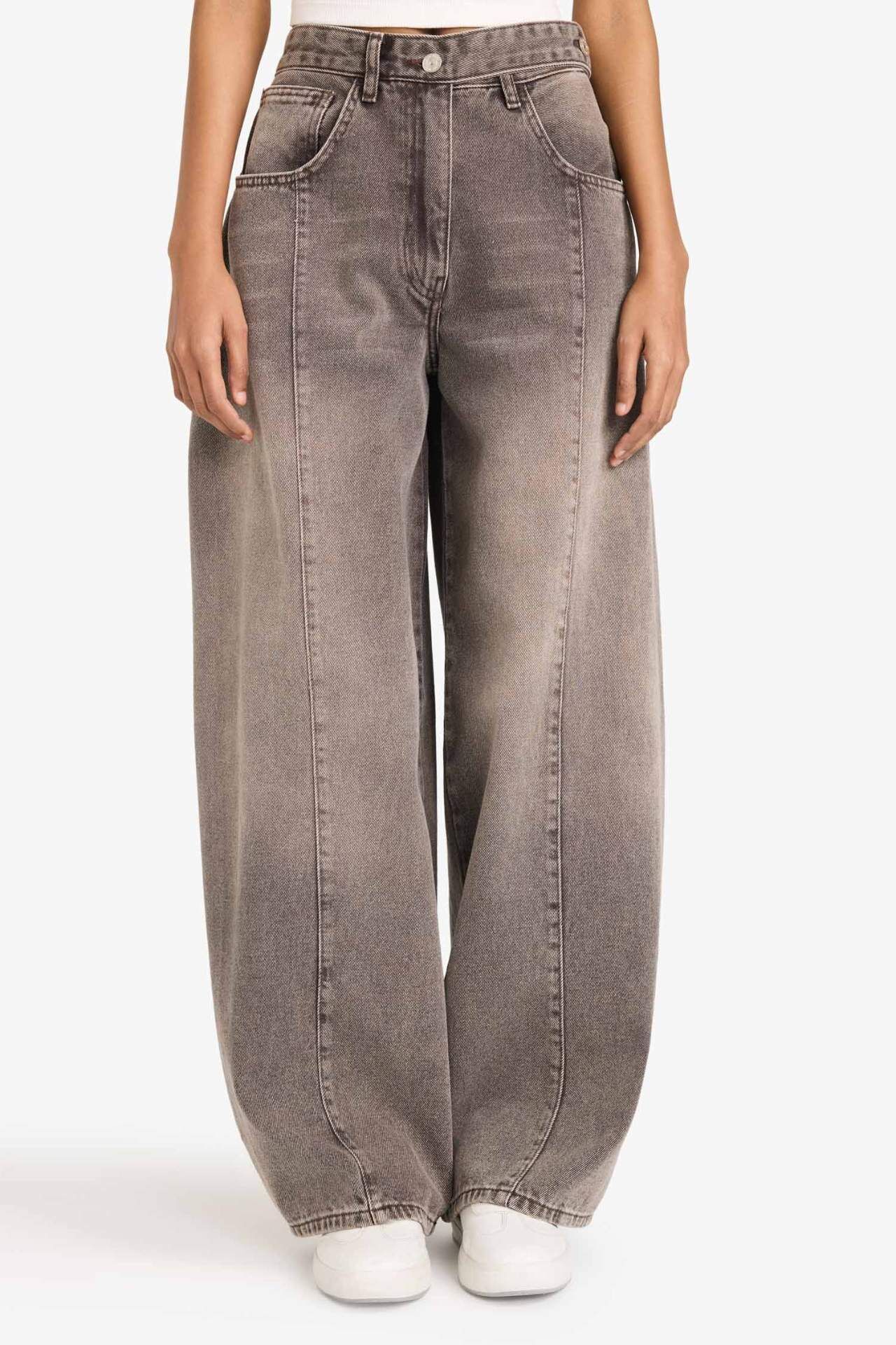 Barrel fit, yüksek bel ve uzun tasarıma sahip yıkamalı jean pantolon, modern ve rahat bir stil sunar. Yıkamalı detayları sayesinde kombinlere cool bir hava katarken, yüksek bel kesimi şık bir siluet oluşturur. Günlük kullanım ve casual kombinler için ideal bir tercihtir. Pamuk 100%,Pamuk 100% Manken Bedeni: Göğüs: 74 Boy: 1,74 Basen: 89 Bel: 60