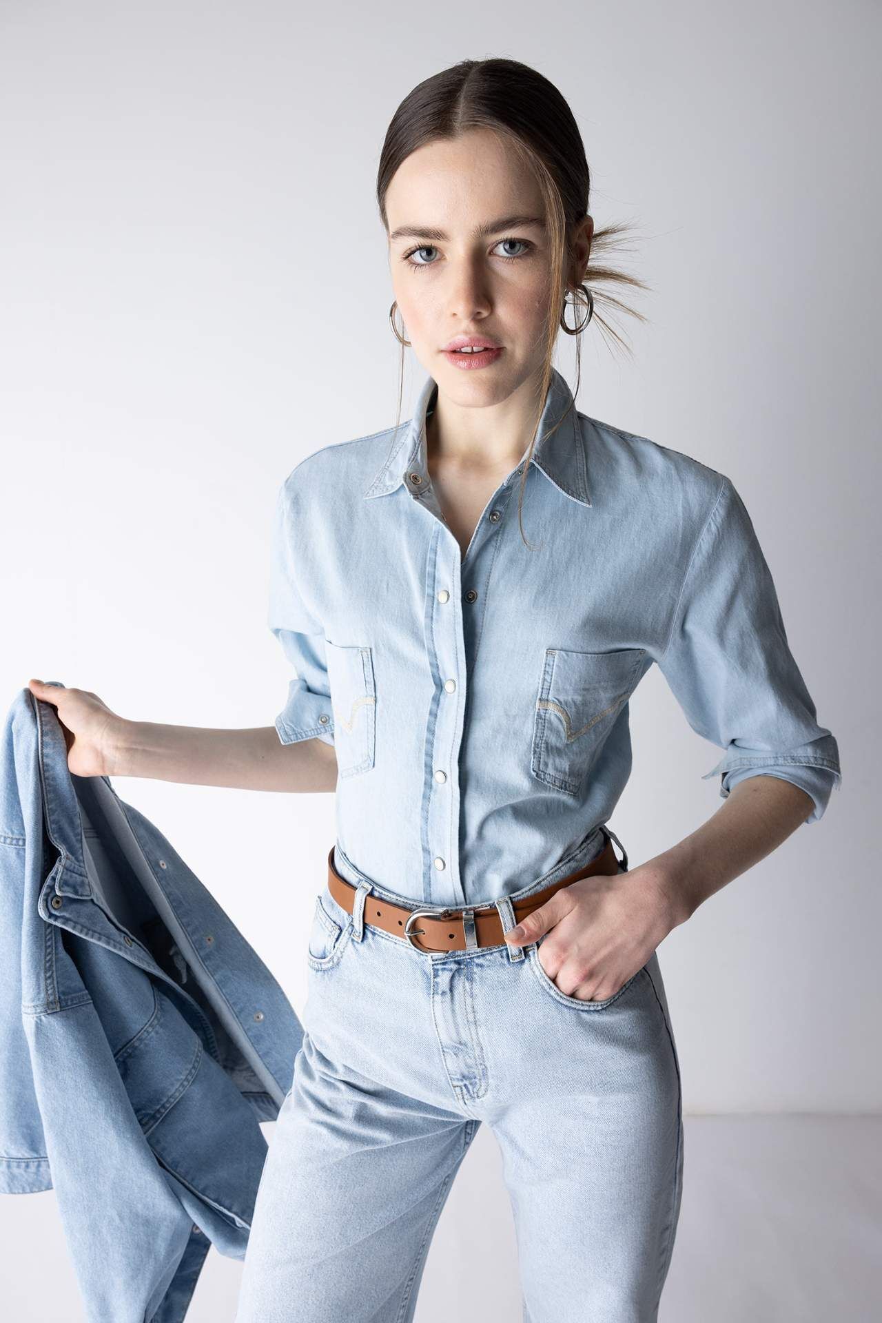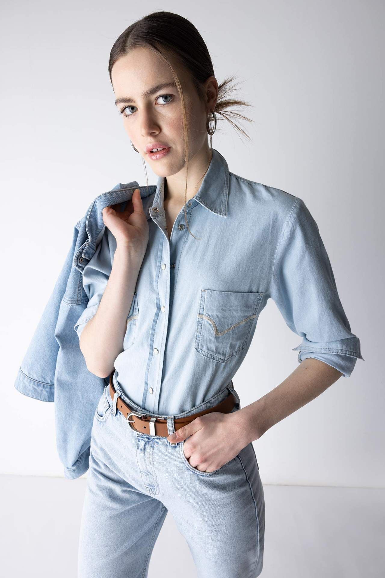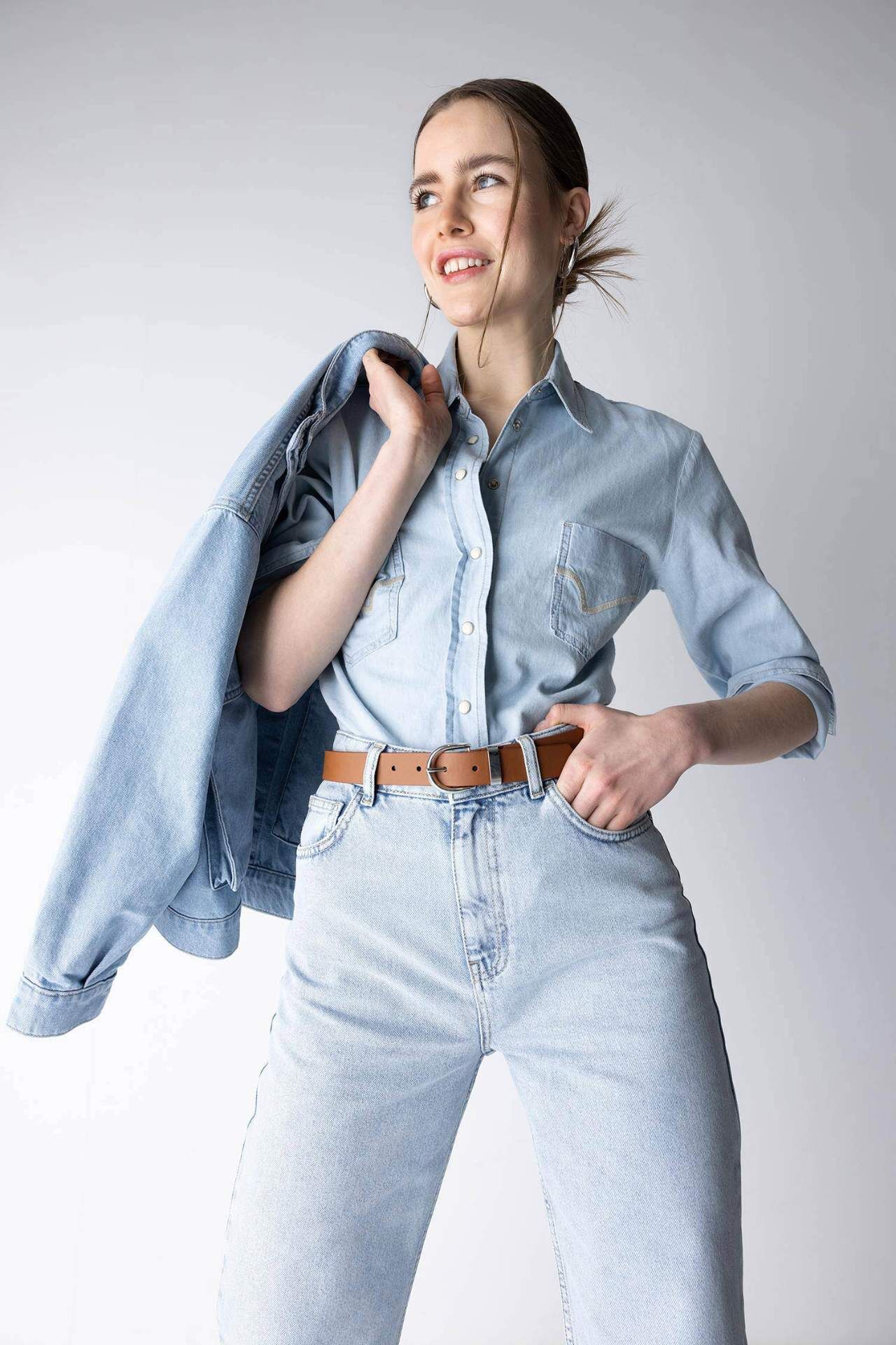 Trend jean tasarımı ve pamuklu rahat kumaşı ile her tarz şort, tayt, etek, jean ve dokuma pantolonlarınızla kombinleyebileceğiniz, her tarz için kullanışlı, renk bloklu modeliyle stil sahibi, uzun kollu rahat tasarımıyla hem günlük hem de klasik tamamlayabileceğiniz, mevsimin en aranan parçalarından DeFacto Kadın Basic Uzun Kollu Jean Gömlek. Pamuk 100%