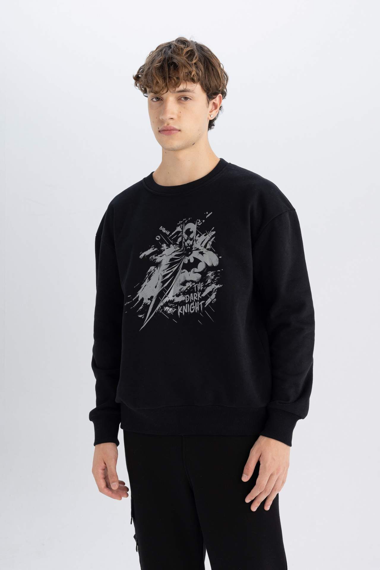 DeFacto Batman Boxy Fit Bisiklet Yaka Baskılı Kalın Kumaş Sweatshirt