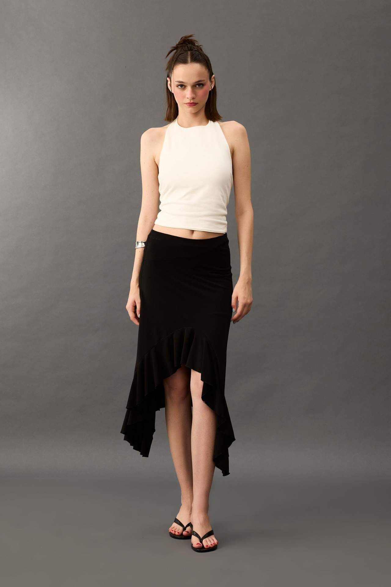 Beli lastikli yapısıyla rahatlık sağlayan bu asimetrik midi etek, modern ve şık tasarımıyla öne çıkar. Asimetrik kesimi sayesinde hareketli ve özgün bir görünüm sunar. Günlük veya özel kombinlerde stilinize zarif bir dokunuş katar. Elastan 5%,Poliester 95%,Elastan 5%,Poliester 95%,Elastan 5%,Poliester 95%,Elastan 5%,Poliester 95%,Elastan 5%,Poliester 95%,Elastan 5%,Poliester 95%,Elastan 5%,Poliester 95% Manken Bedeni: Göğüs: 84 Boy: 1,76 Basen: 90 Bel: 61
