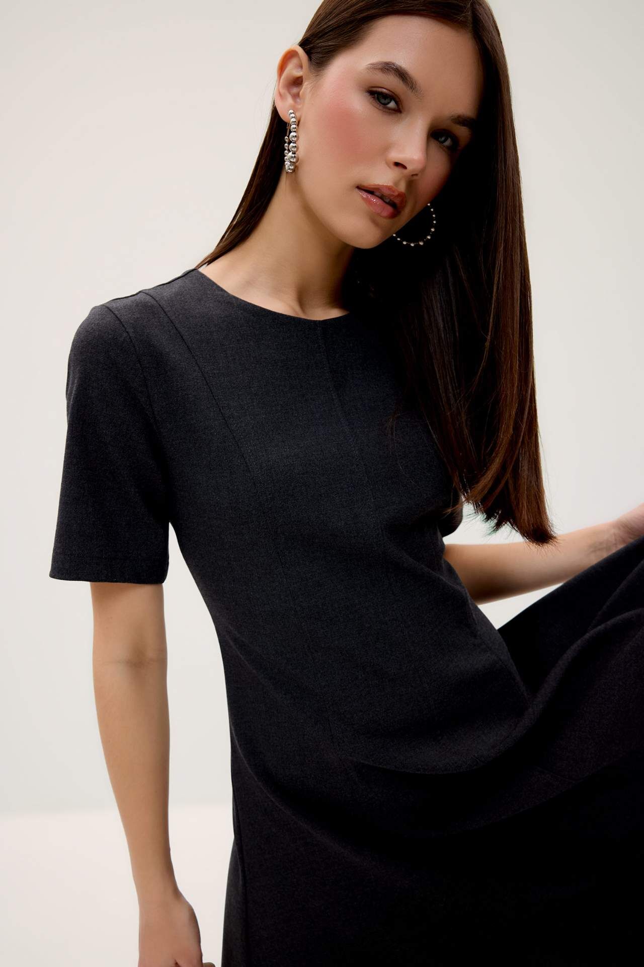 Bisiklet Yaka Basic Düz Kısa Kollu Midi Elbise