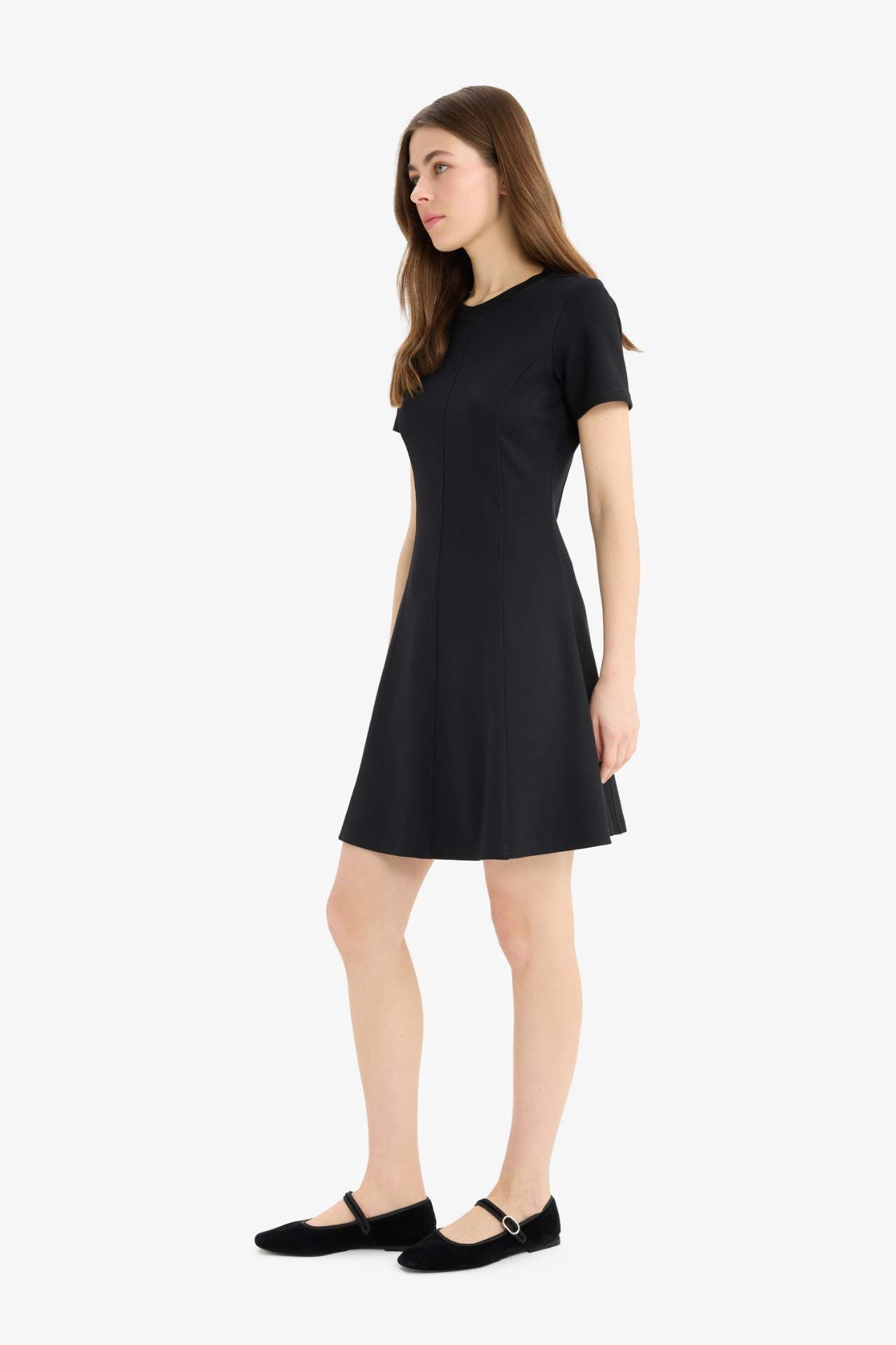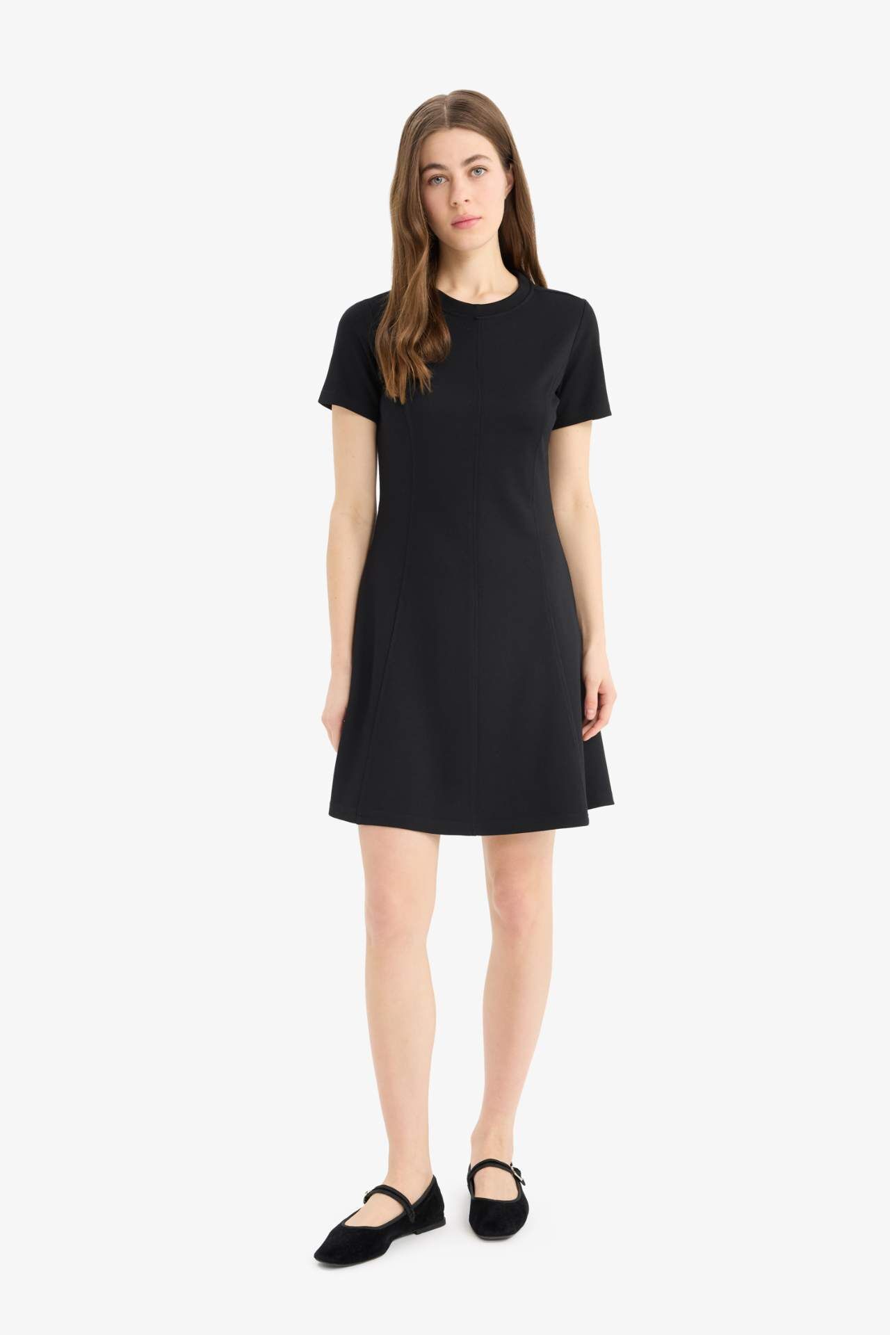 Bisiklet Yaka Basic Düz Kısa Kollu Mini Elbise