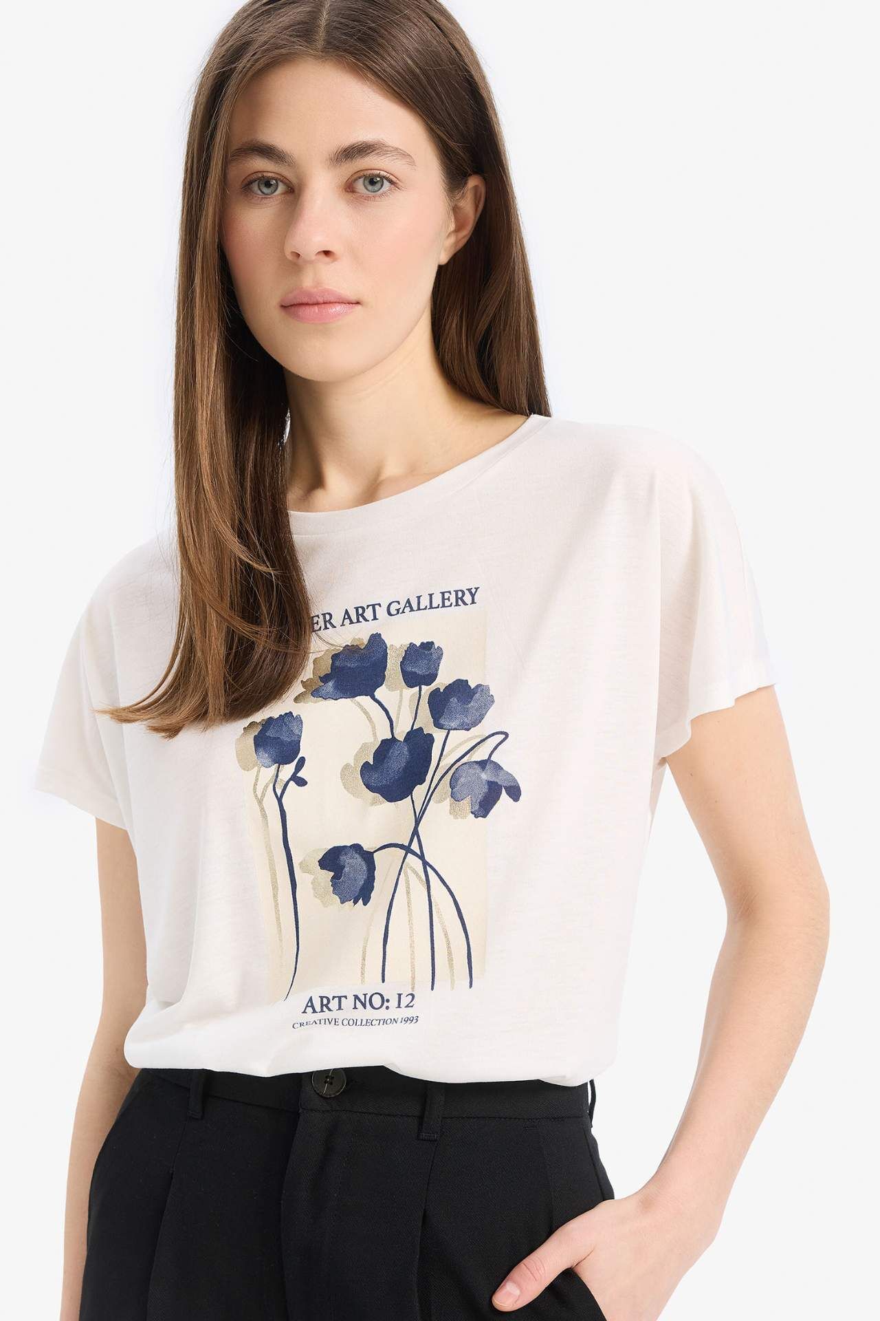 Yetişkin kadınlar için ideal bir seçim olan örgü kısa kollu tişört. Çiçek deseni ve yarasa kol detayıyla dikkat çekici bir görünüm sunar. Şık ve rahat tasarımıyla öne çıkan bu baskılı tişört, ilkbahar/yaz mevsim koşulları için mükemeldir. Ekru rengi ve bisiklet yaka detayıyla tarzınızı tamamlayacak bir seçenek. Viskoz 35%,Poliester 65%,Viskoz 35%,Poliester 65%,Viskoz 35%,Poliester 65%,Viskoz 35%,Poliester 65%
