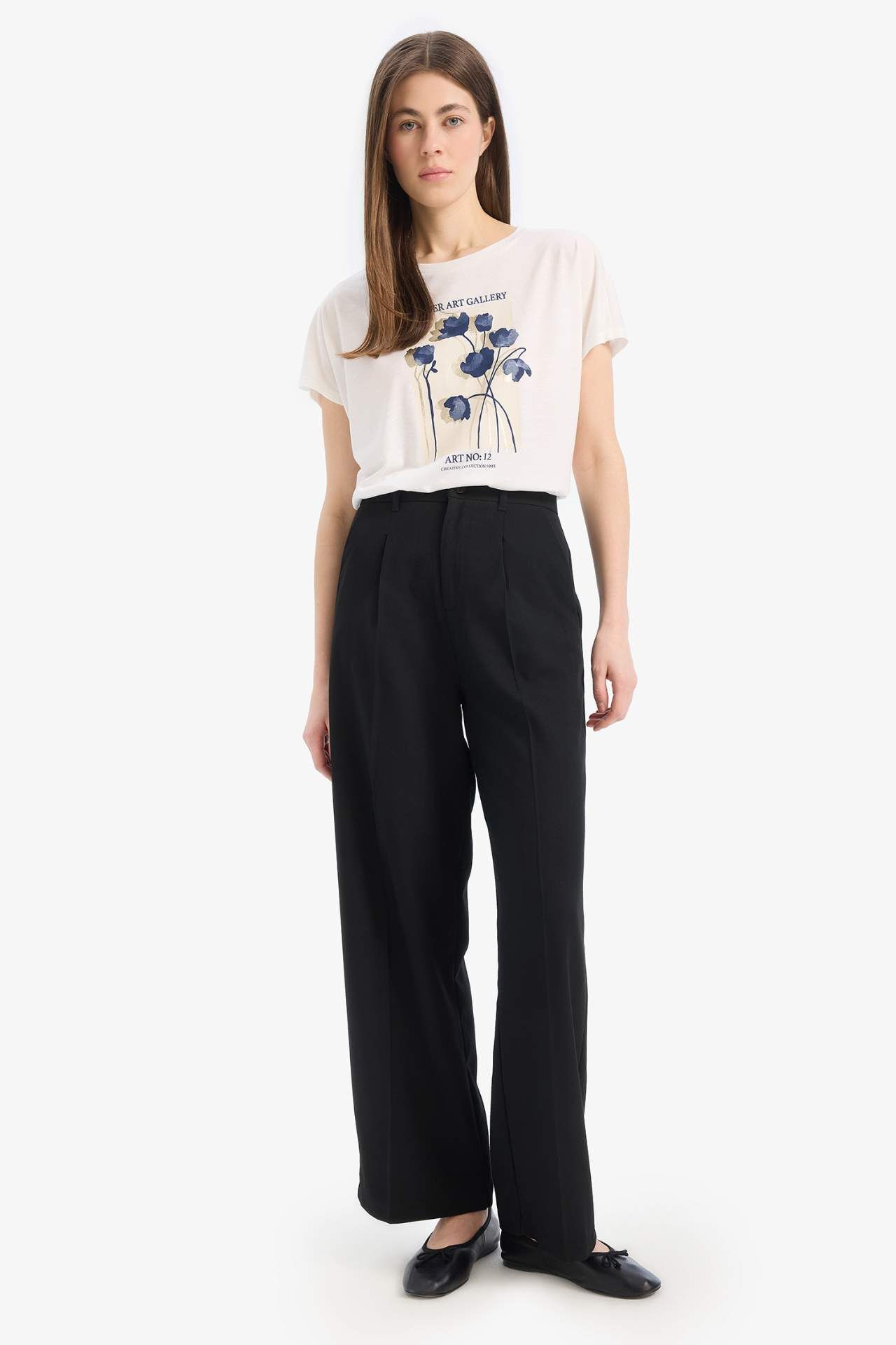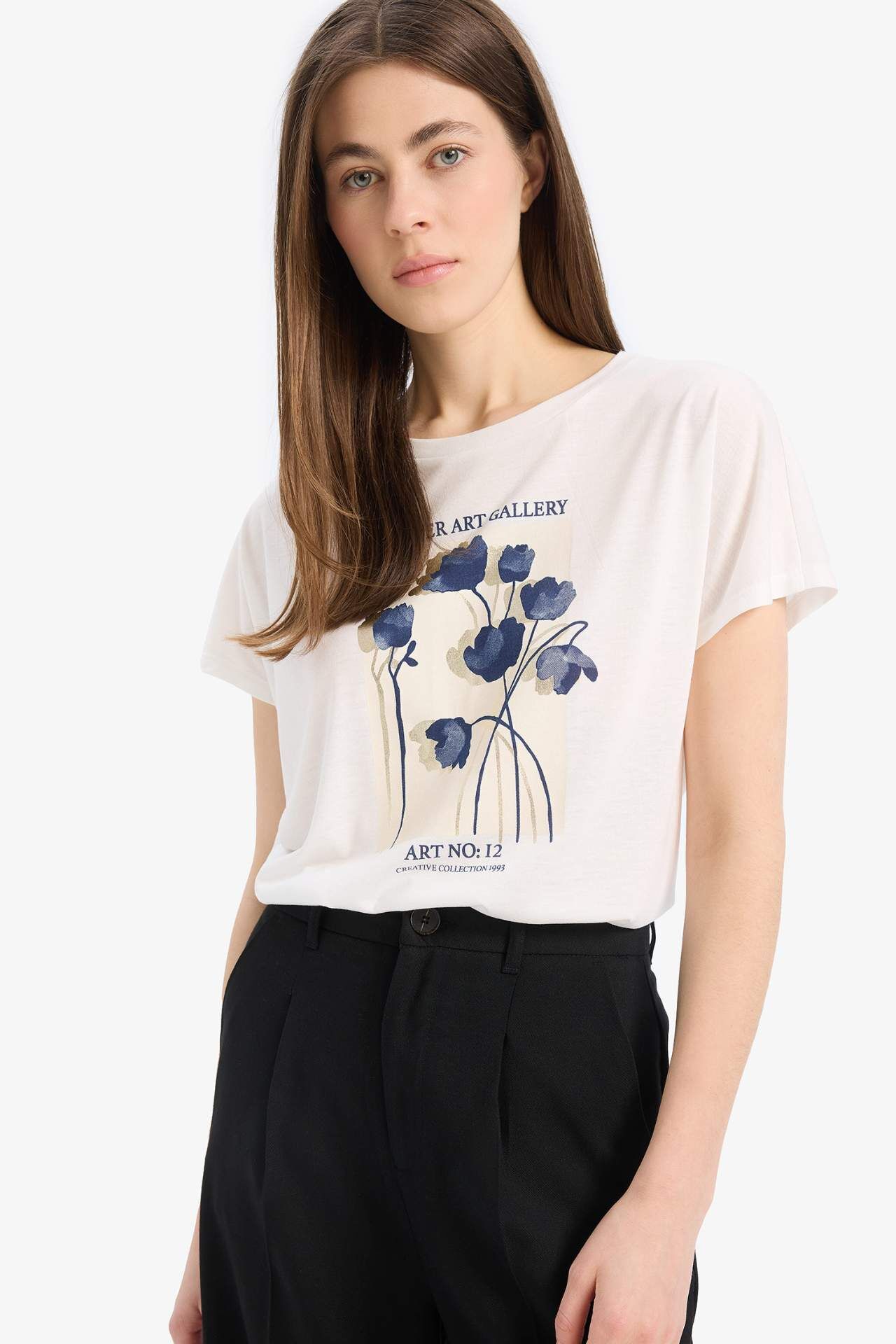 DeFacto Bisiklet Yaka Çiçekli Kısa Kollu Tişört E5138AX25SPER105