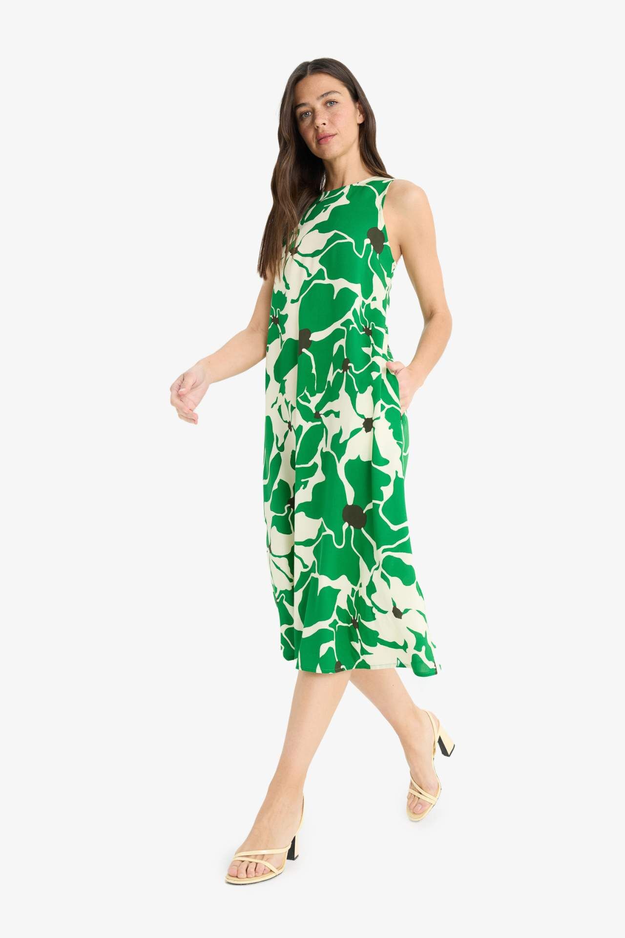 Yetişkin kadınlar için yaz mevsimine uygun yeşil floral desenli, midi boy elbise. Normal bel detayı ve kolsuz bisiklet yaka ile basic tarzda tasarlanmış. Şıklık ve rahatlık arayanlar için ideal bir seçim. Temel çeşit içinde öne çıkan bu ürün, gardırobunuza fresh bir hava katacak. Viskoz 100%,Viskoz 100%,Viskoz 100%,Viskoz 100%,Viskoz 100%,Viskoz 100%,Viskoz 100% Manken Bedeni: Göğüs: 81 Boy: 1,75 Basen: 88 Bel: 60