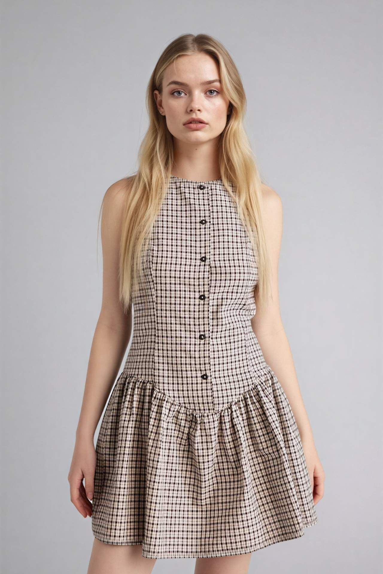 Kareli Pamuklu Kolsuz Mini Elbise, retro esintileri modern ve ferah bir silüetle birleştirerek yaz gardırobunuza nostaljik bir dokunuş katıyor. Tamamen doğal pamuklu dokusu sayesinde en sıcak günlerde bile cildinizin nefes almasını sağlar ve gün boyu konforlu bir kullanım sunar. Vücut hatlarını zarifçe takip eden kesimi ve diz üzerinde biten mini boyu, dinamik ve enerjik bir duruş sergiler. Zamansız kareli (gingham) deseni, elbiseye hem piknik şıklığı hem de şehirli bir hava katarken; kolsuz tasarımı hareket özgürlüğünüzü en üst seviyeye taşır. Klasik bisiklet yaka detayıyla sade ve asil bir görünüm sunan bu parça, sandaletlerle çabasız bir gündüz şıklığı, sneakerlarla ise sportif bir hafta sonu stili yaratmak için idealdir. Pamuk 82%,Poliester 18% Manken Bedeni: Göğüs: 84 Boy: 1,74 Basen: 91 Bel: 61