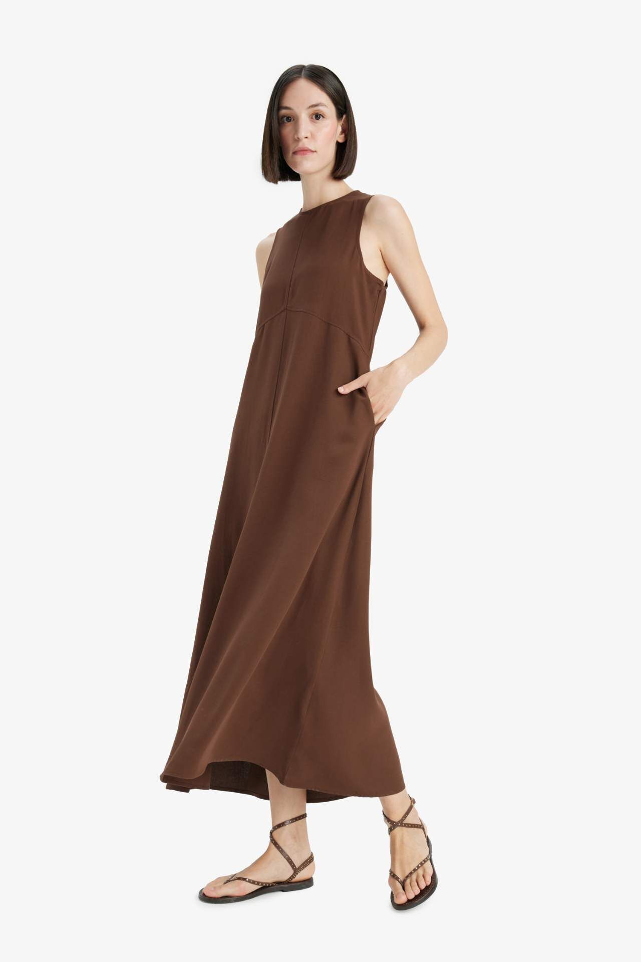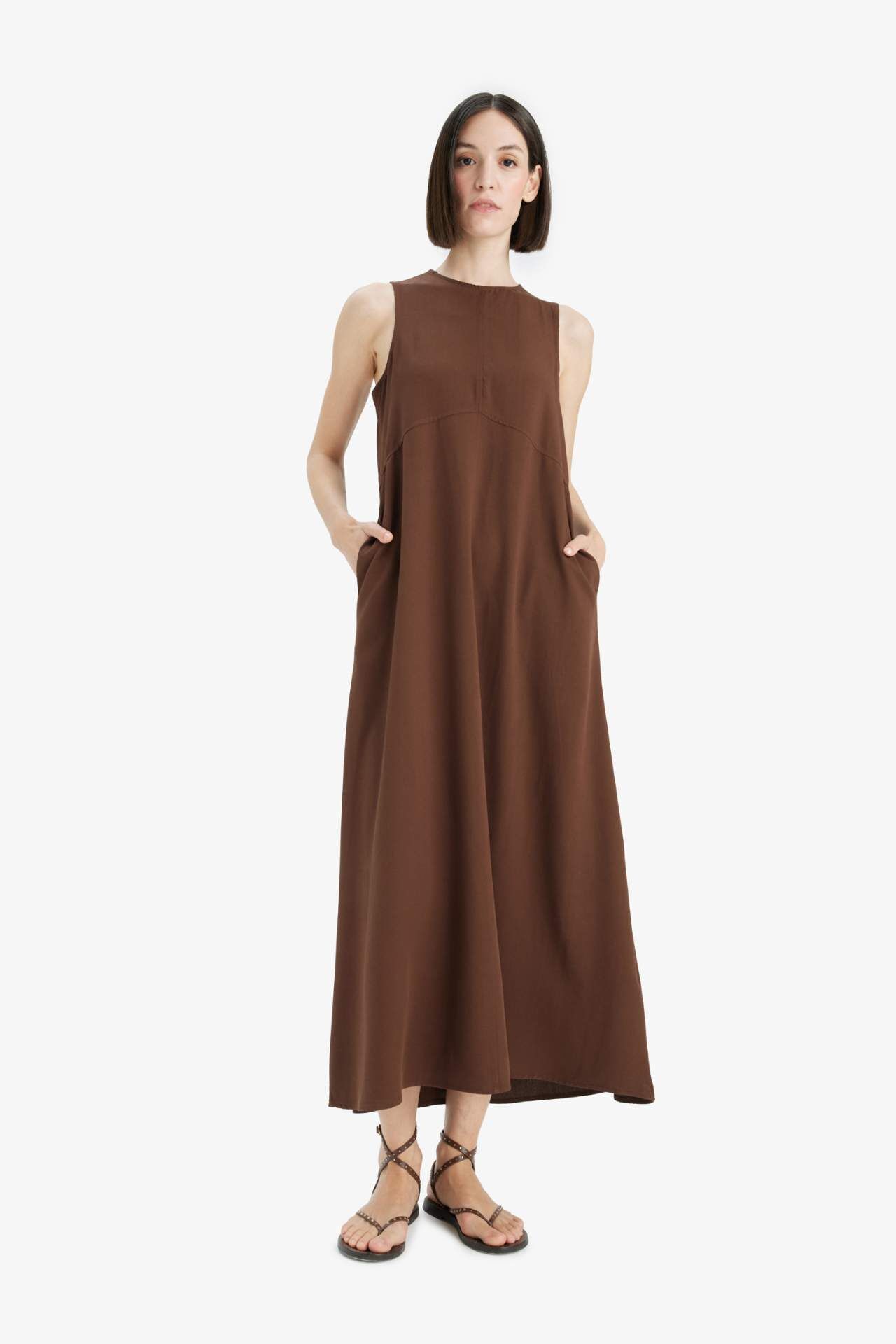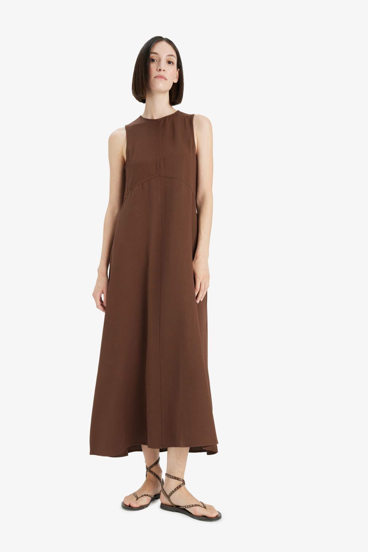 Bisiklet Yaka Keten Karışımlı Kolsuz Maxi Elbise