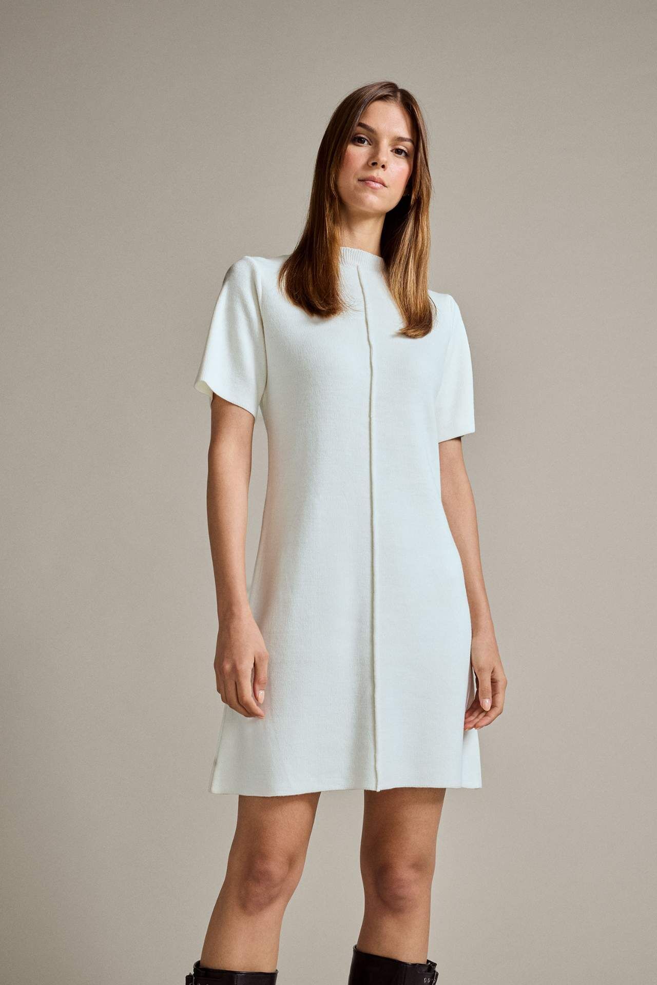 Bisiklet Yaka Kısa Kollu Mini Elbise
