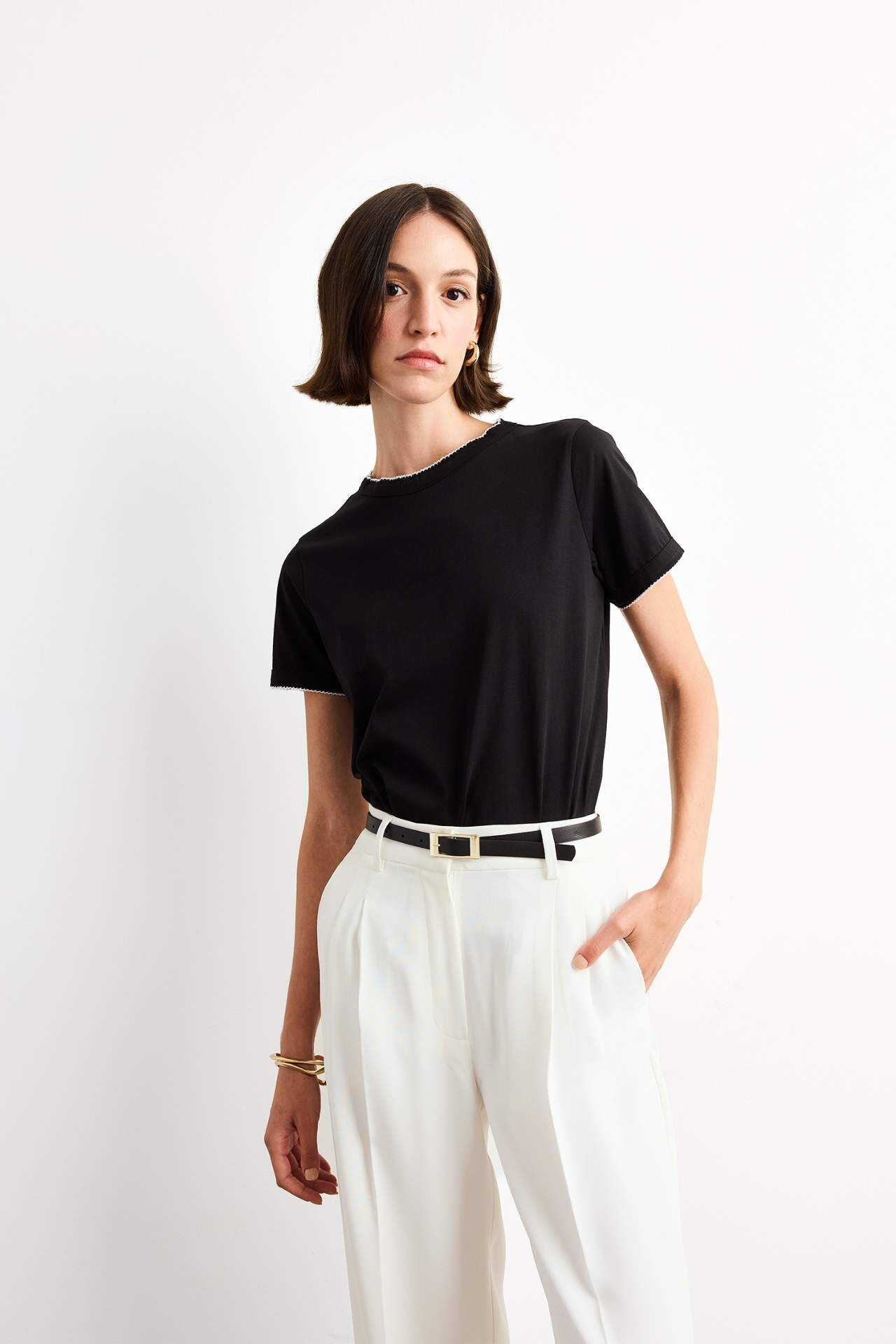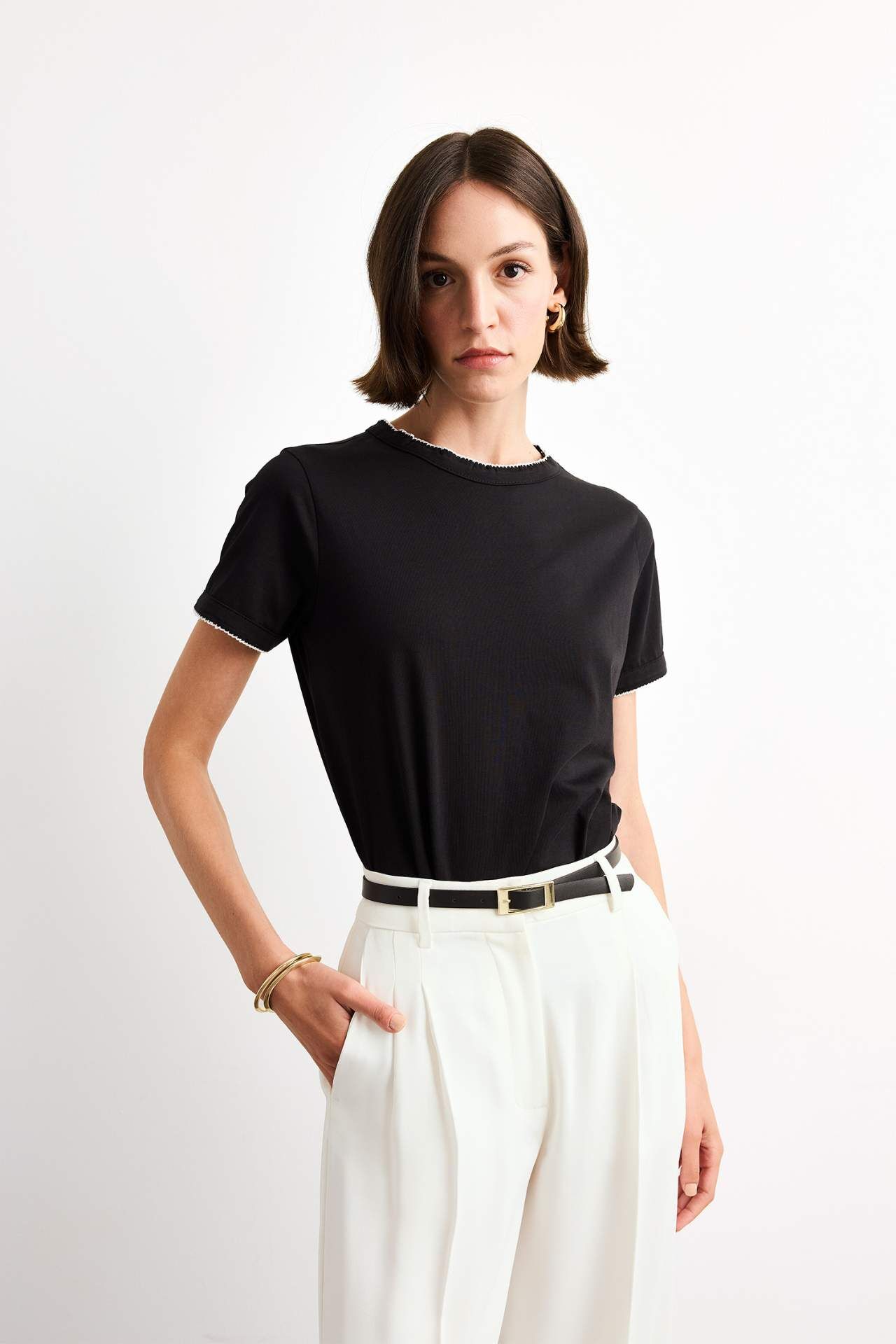 Bisiklet yaka kısa kollu tişört, sade ve zamansız tasarımıyla her stile uyum sağlar. Rahat kesimi sayesinde günlük kullanıma uygun, dolabınızın vazgeçilmez parçası. Pamuk 100%,Pamuk 100%,Pamuk 100%,Pamuk 100%,Pamuk 100%,Pamuk 100% Manken Bedeni: Göğüs: 83 Boy: 1,81 Basen: 90 Bel: 58