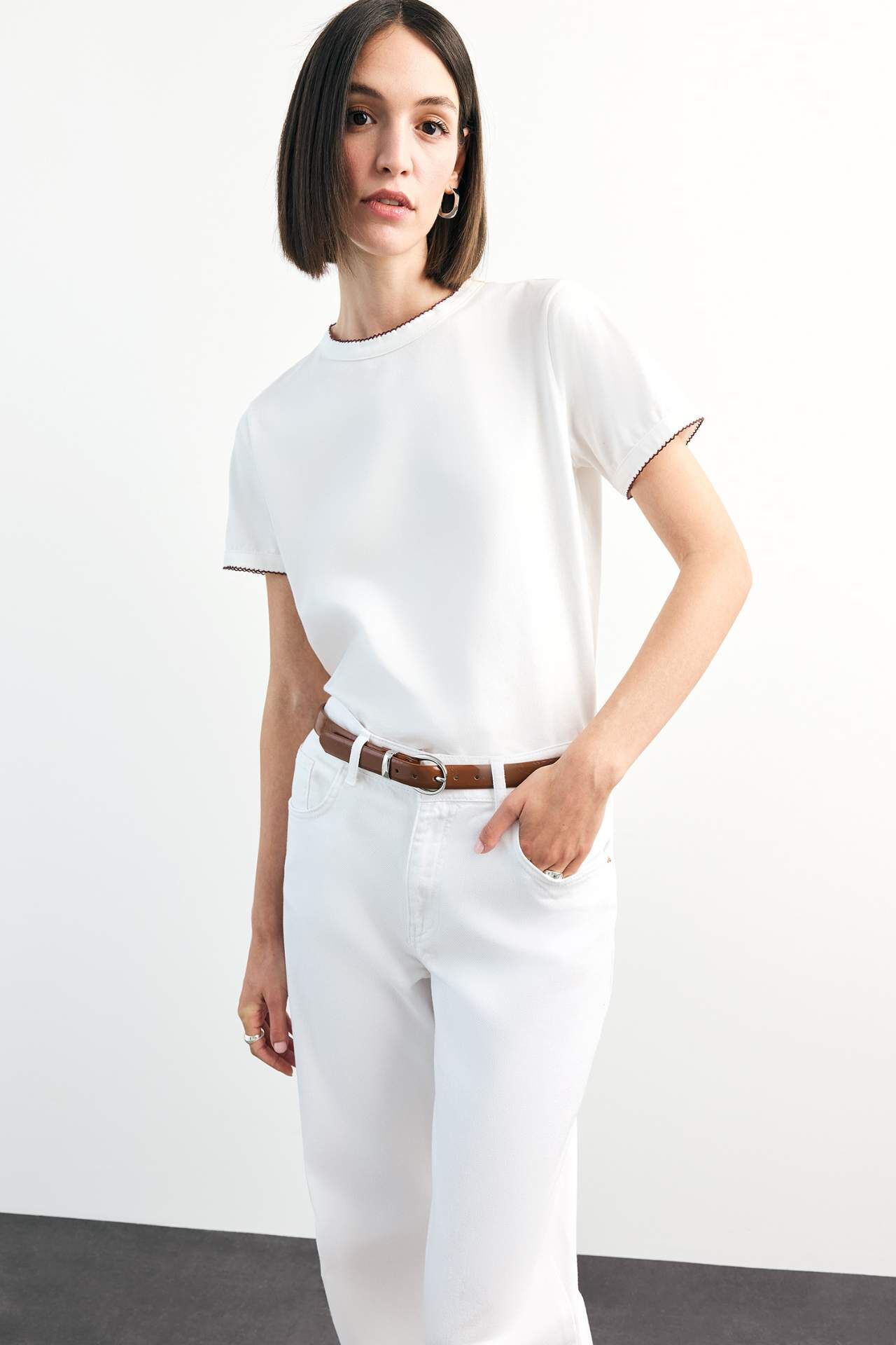 Bisiklet yaka kısa kollu tişört, sade ve zamansız tasarımıyla her stile uyum sağlar. Rahat kesimi sayesinde günlük kullanıma uygun, dolabınızın vazgeçilmez parçası. Pamuk 100%,Pamuk 100%,Pamuk 100%,Pamuk 100%,Pamuk 100%,Pamuk 100% Manken Bedeni: Göğüs: 83 Boy: 1,81 Basen: 90 Bel: 58