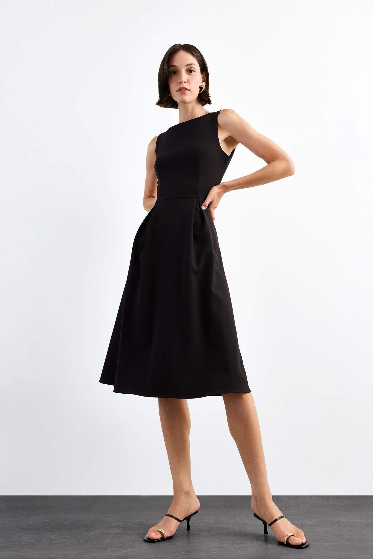 Bisiklet Yaka Kolsuz Midi Elbise