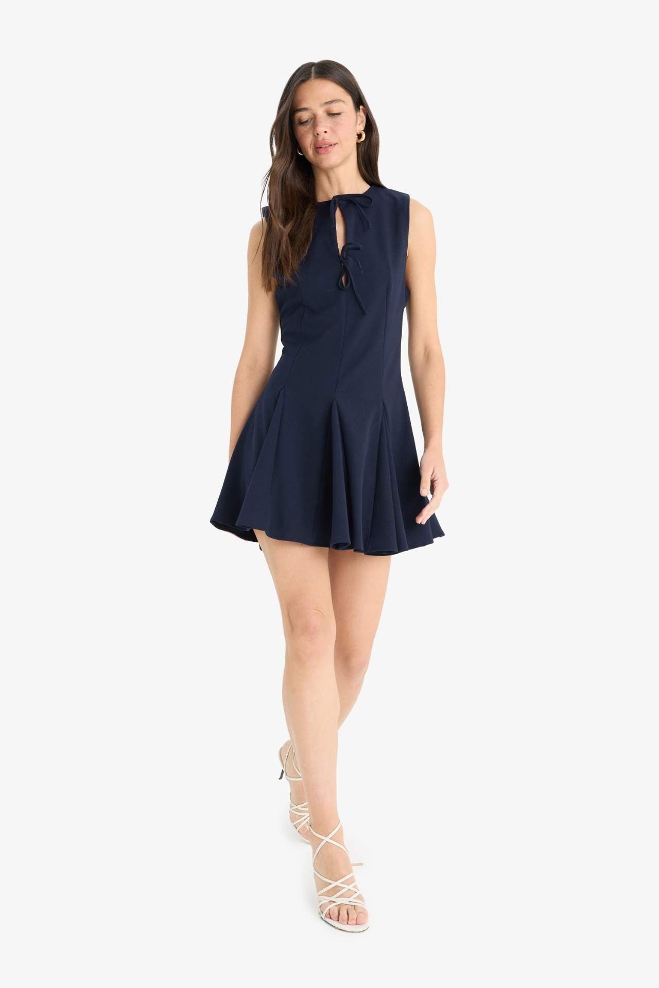 Yetişkin kadınlar için tasarlanmış, normal bel detayıyla krep kumaştan üretilmiş lacivert renkli kolsuz mini elbise. Yaz mevsimine uygun trend parçası, tasarımında bisiklet yaka detayı bulunmaktadır. Şık ve rahat giyim için ideal bir seçenek. Elastan 2%,Poliester 98%,Elastan 2%,Poliester 98%,Elastan 2%,Poliester 98%,Elastan 2%,Poliester 98%,Elastan 2%,Poliester 98%,Elastan 2%,Poliester 98% Manken Bedeni: Göğüs: 81 Boy: 1,75 Basen: 88 Bel: 60