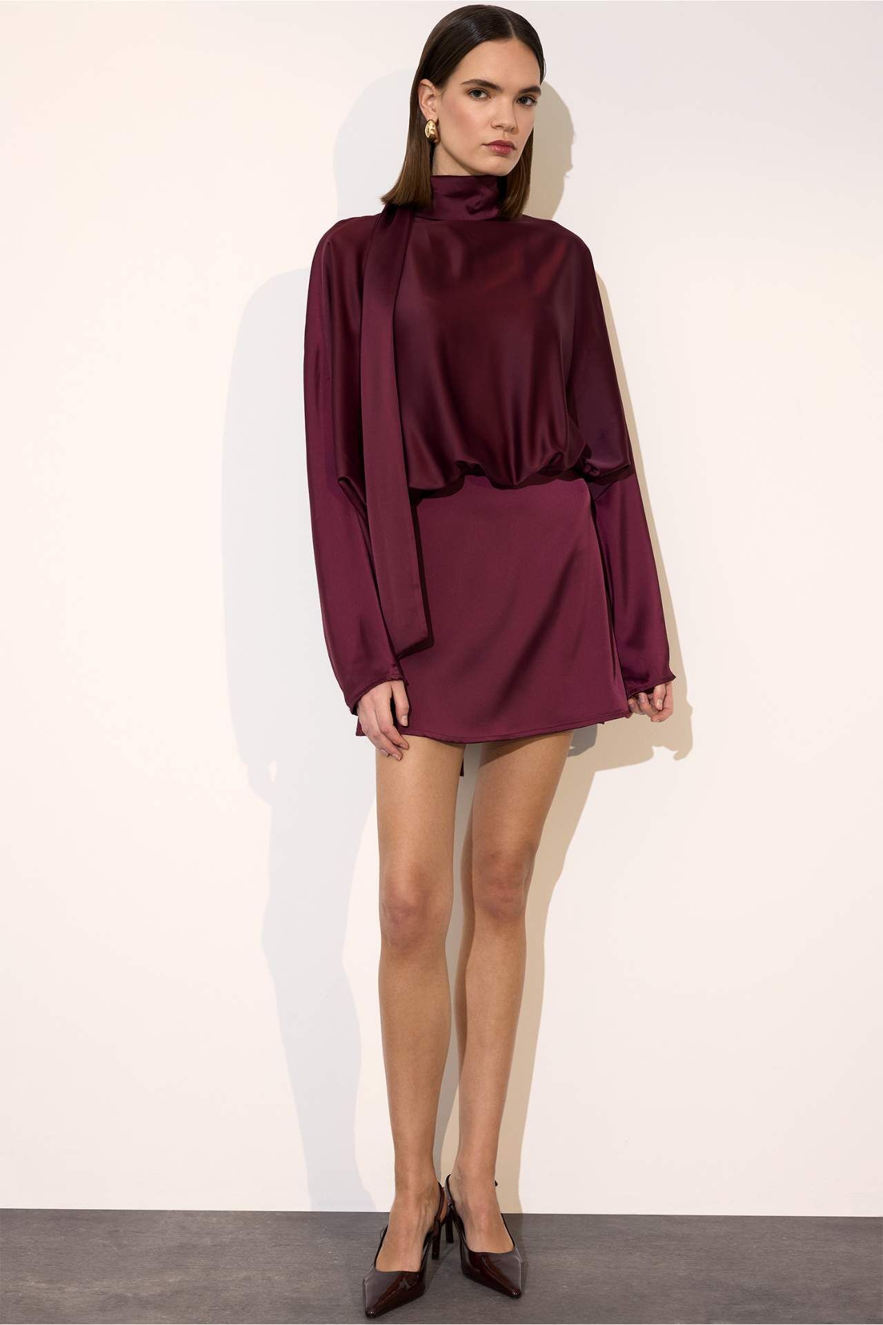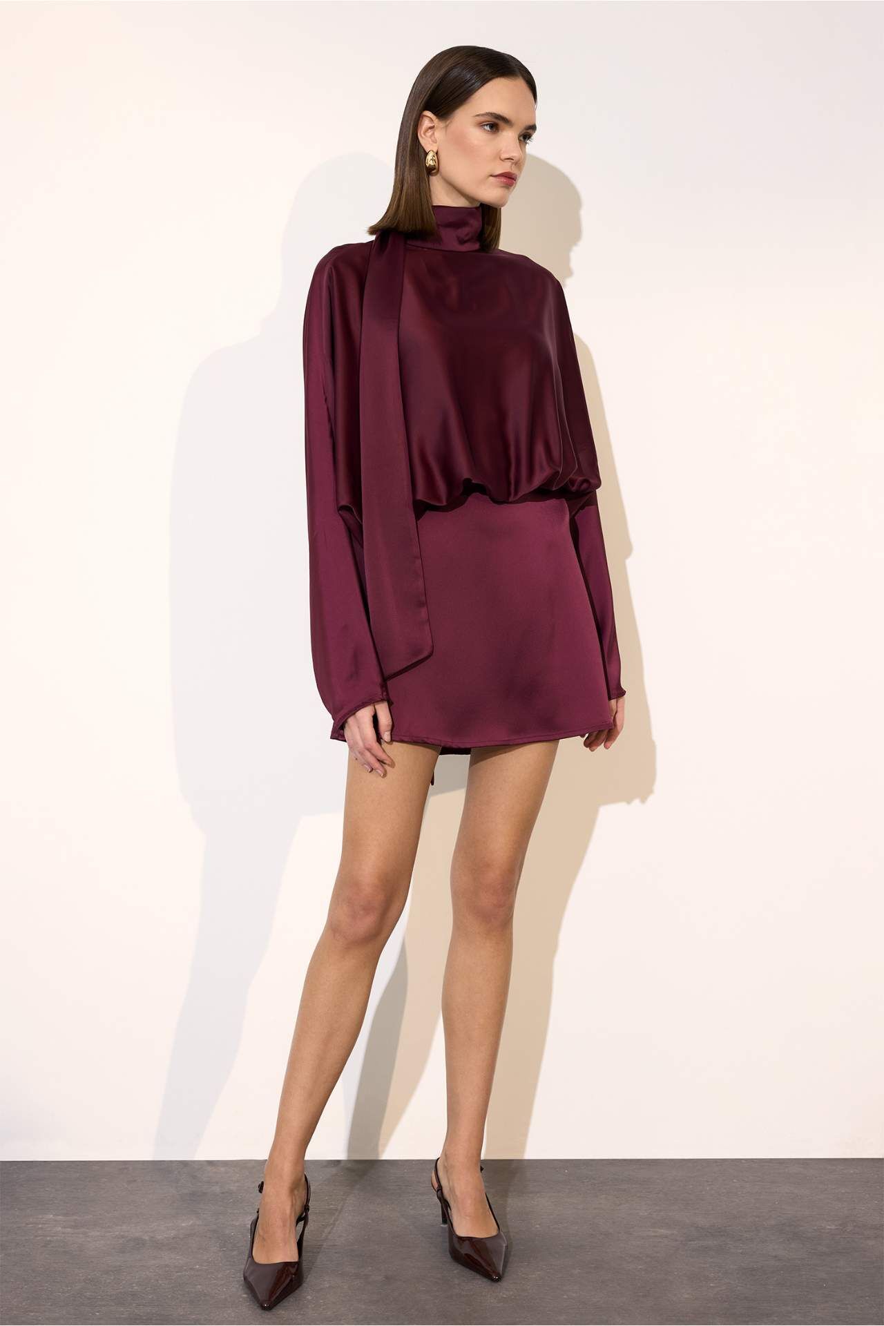 Yarasa kol saten mini elbise, dökümlü kesimi ve parlak saten dokusuyla feminen ve iddialı bir görünüm sunar. Mini boyu ve zarif duruşu sayesinde özel davetler ve şık akşam kombinleri için ideal bir tercihtir. Elastan 2%,Poliester 98%