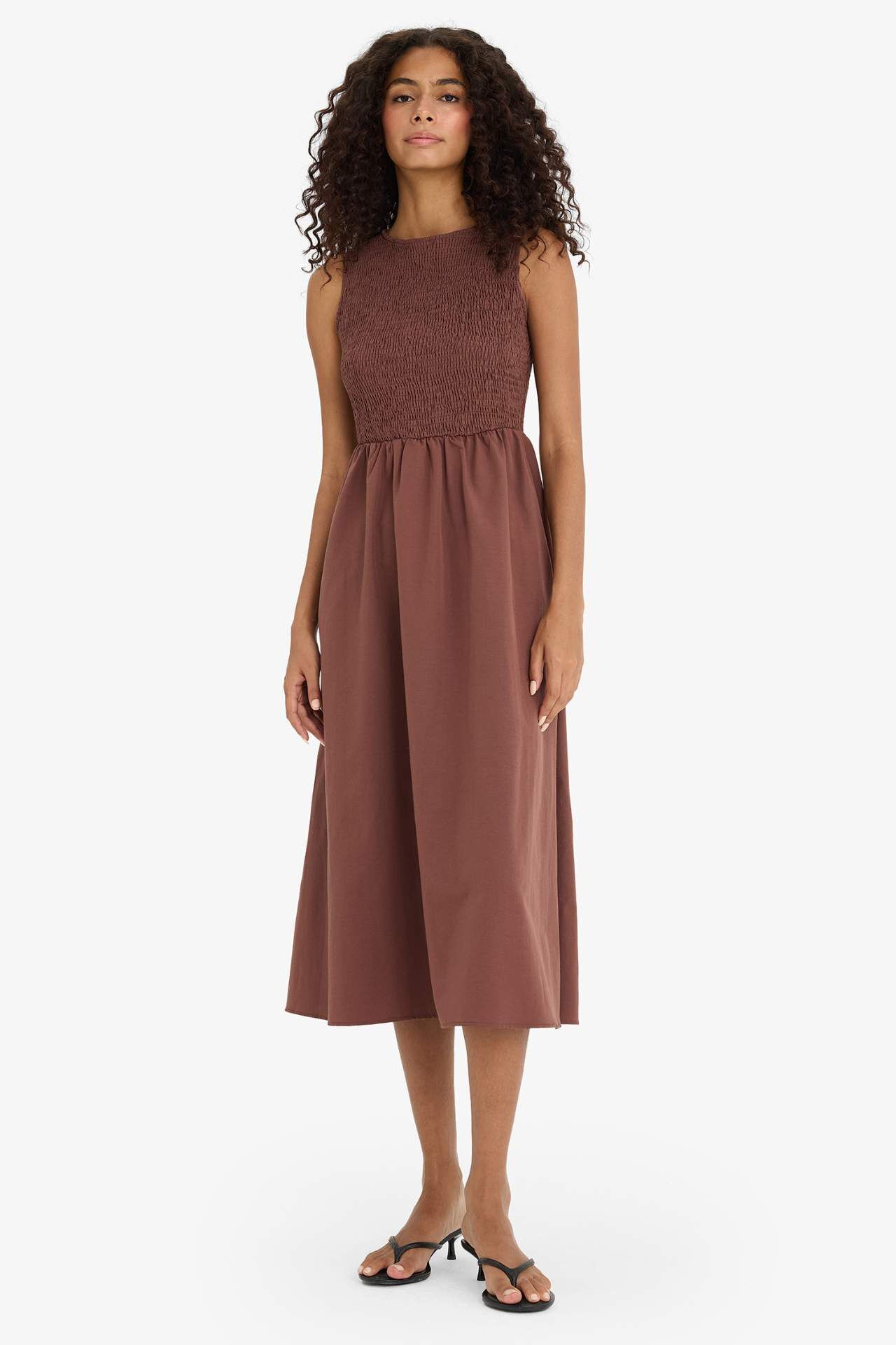 Bisiklet Yaka Terry Cotton Kolsuz Midi Elbise