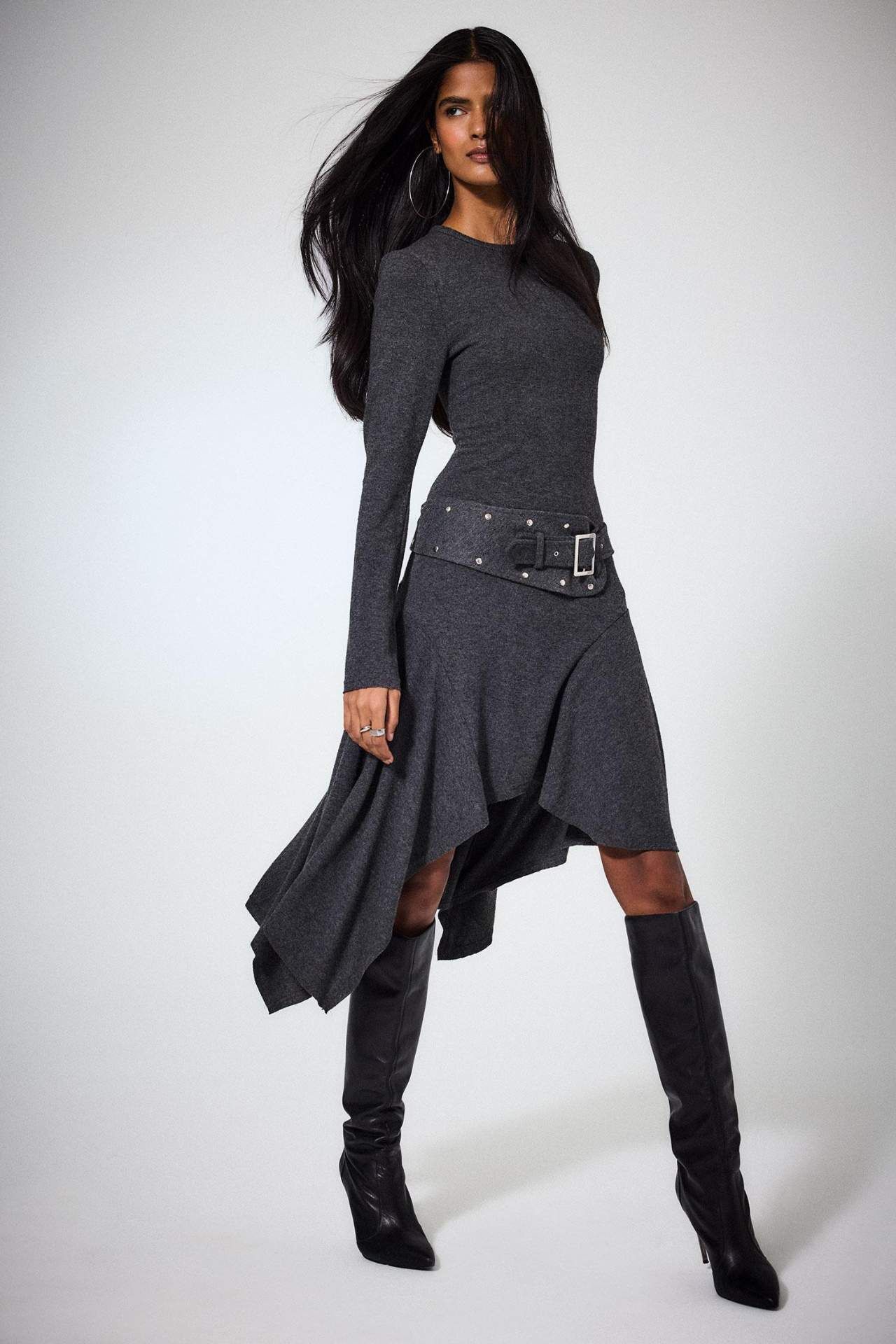 Bisiklet Yaka Uzun Kollu Midi Elbise
