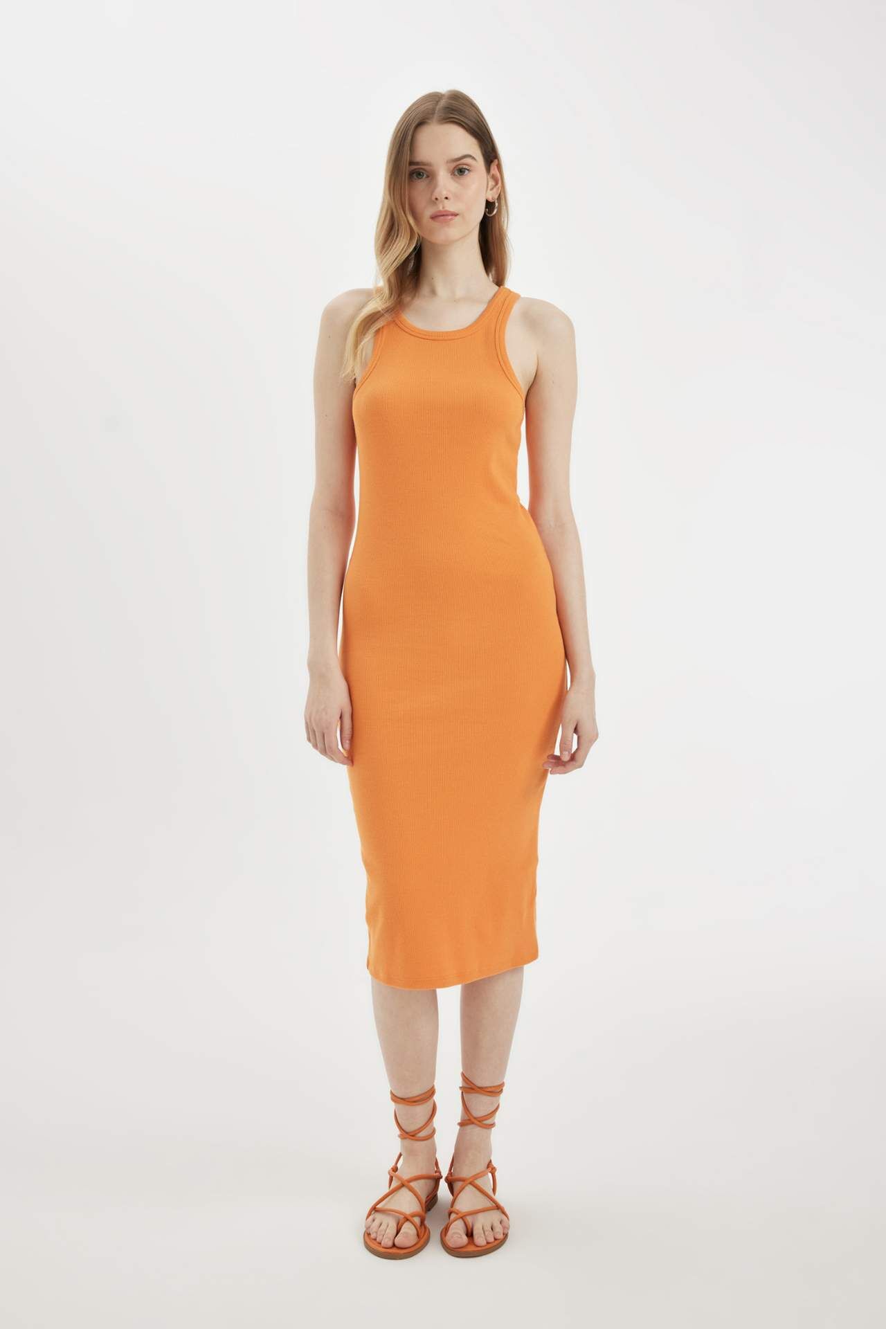 Bodycon Halter Yaka Fitilli Kaşkorse Kolsuz Midi Elbise