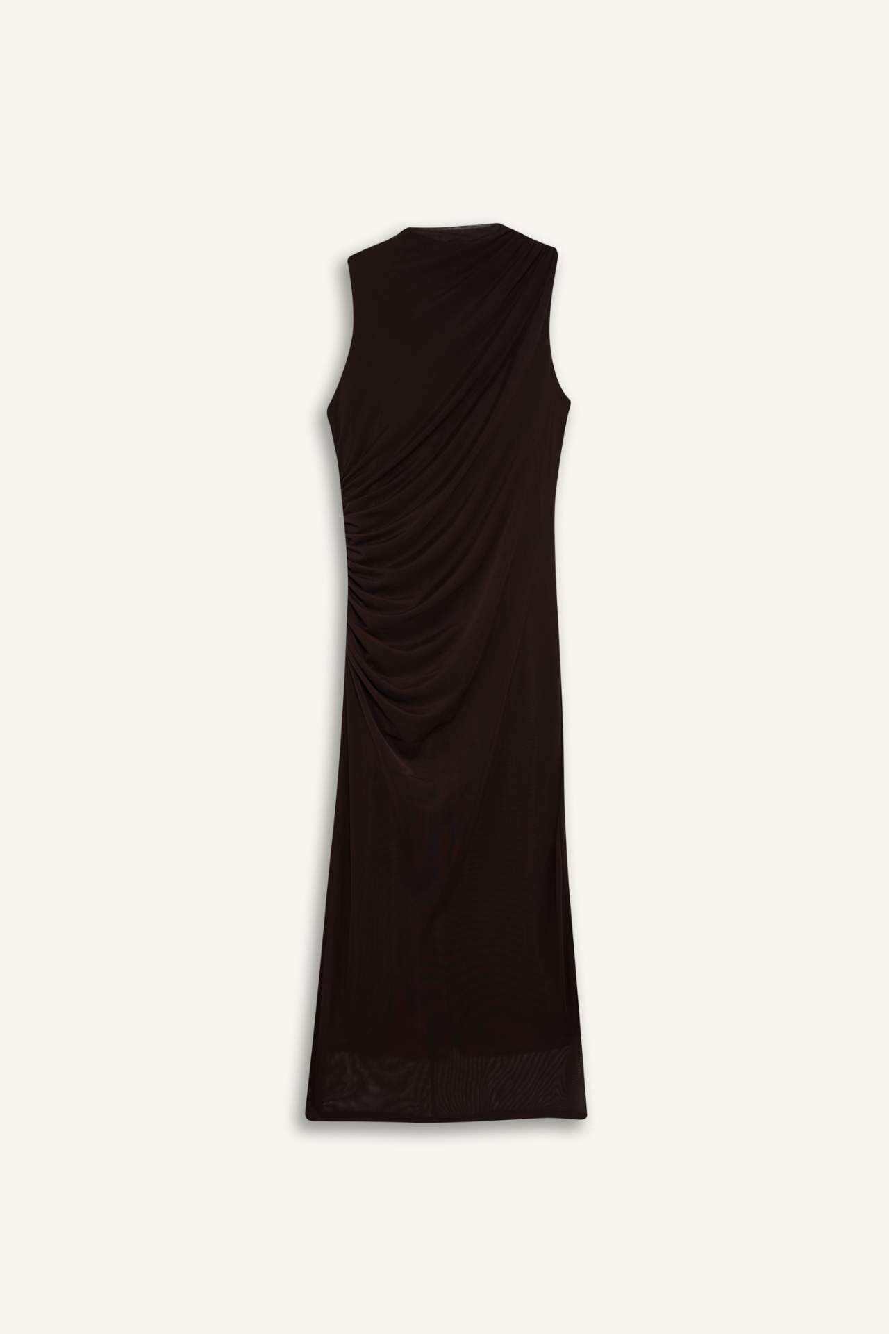 Bodycon Vücudu Saran Yarım Balıkçı Yaka Tül Kolsuz Maxi Elbise