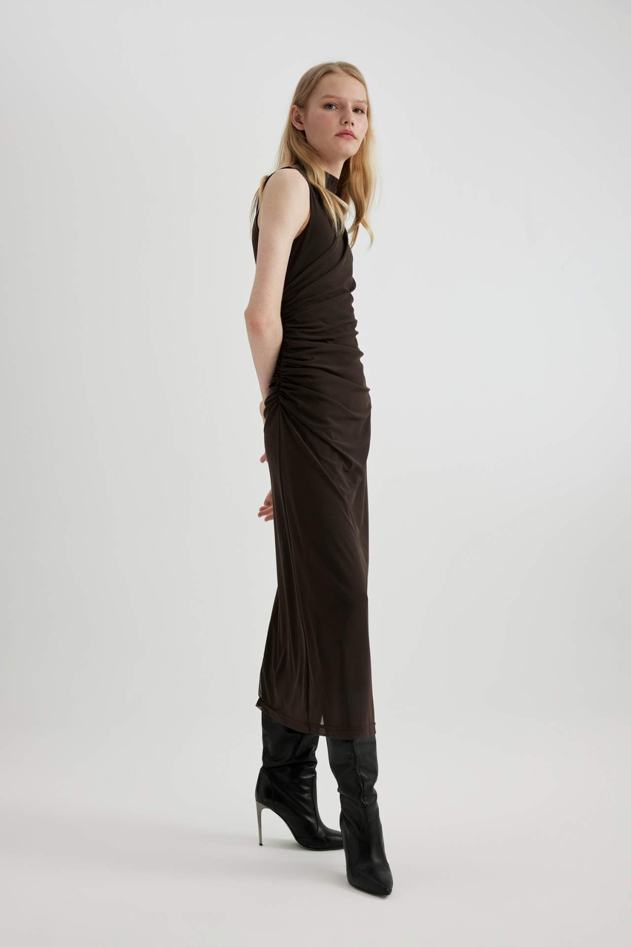 DeFacto Bodycon Yarım Balıkçı Yaka Tül Kolsuz Maxi Elbise