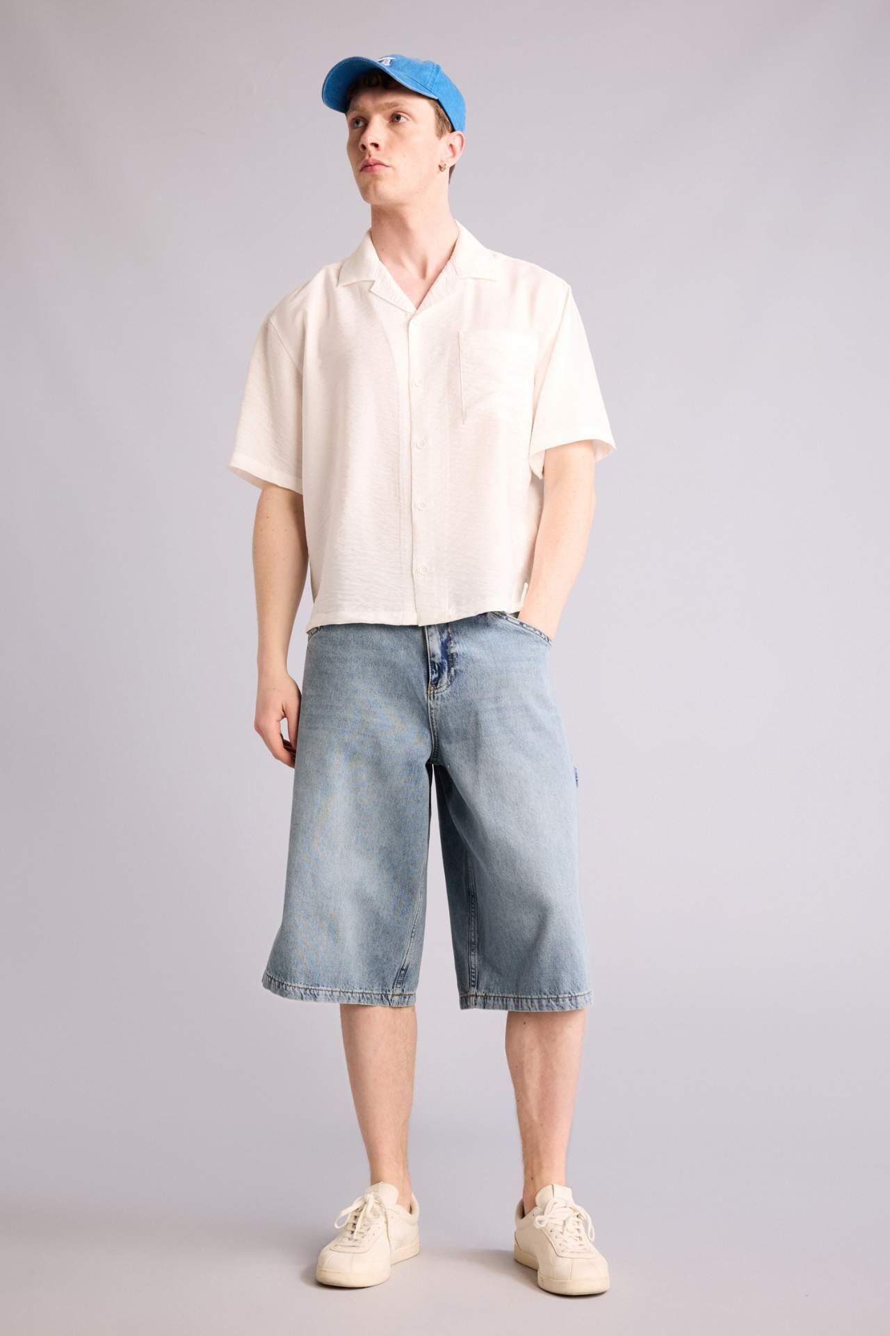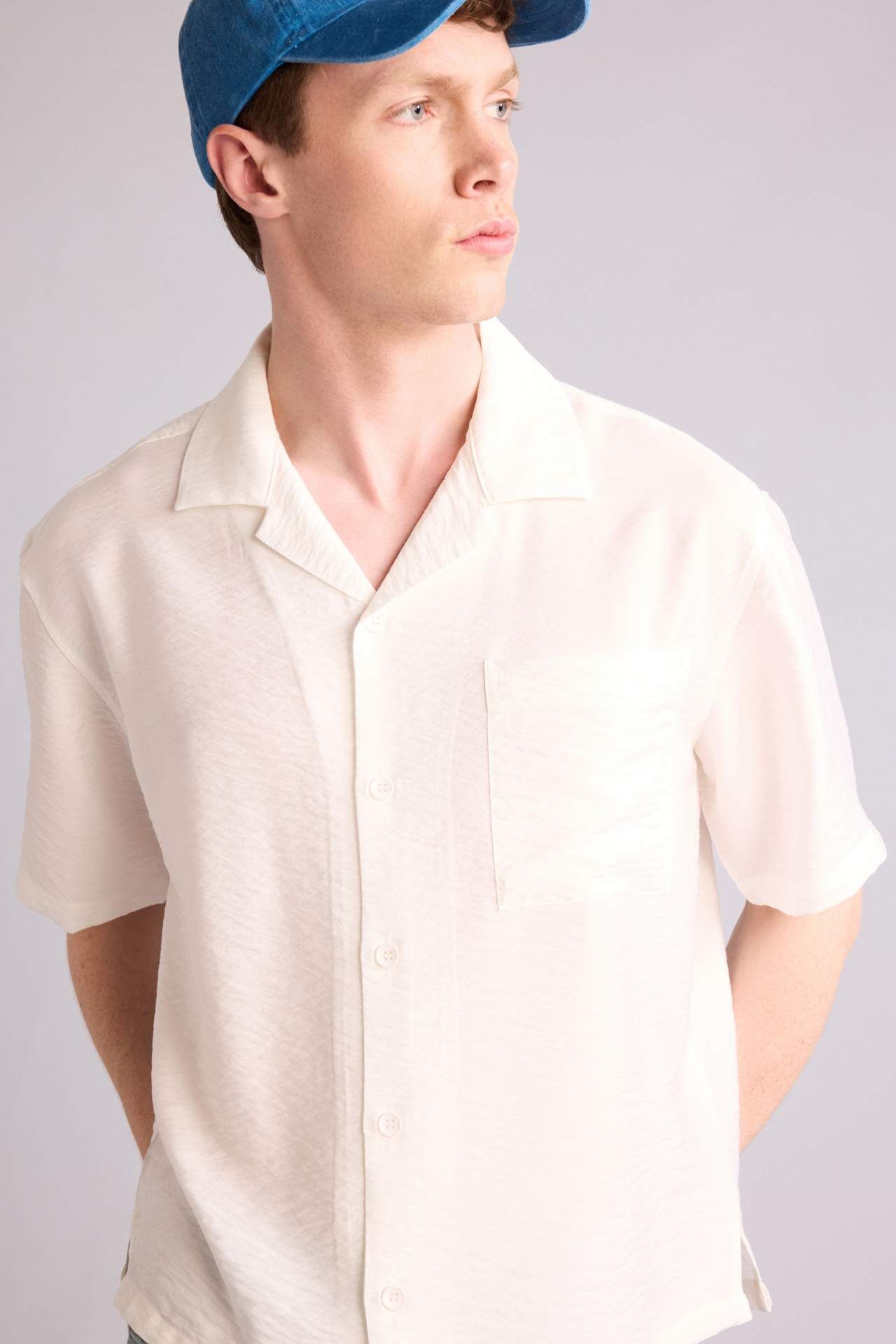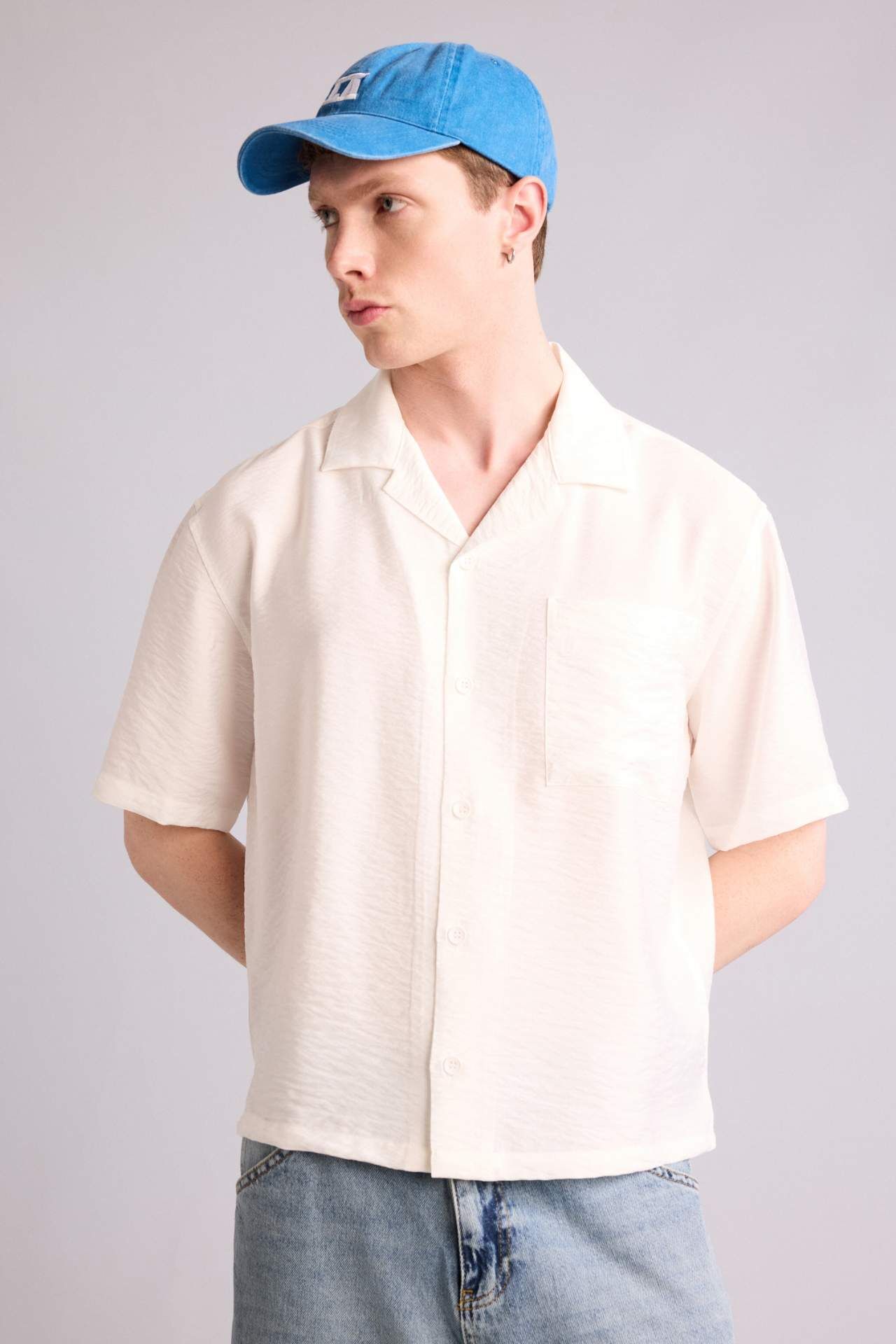DeFacto Boxy Fıt Apaş Yaka Krinkıl Kumaş Kısa Kollu Gömlek