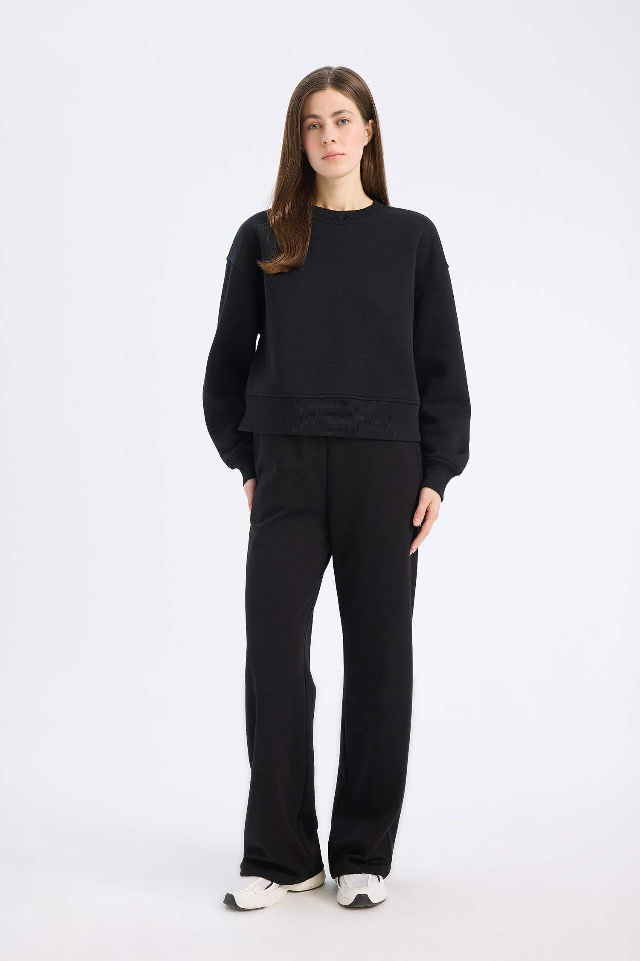 DeFacto Boxy Fit Basic Düz Kalın Sweatshirt Kumaşı Sweatshirt E9616AX25SPBK81