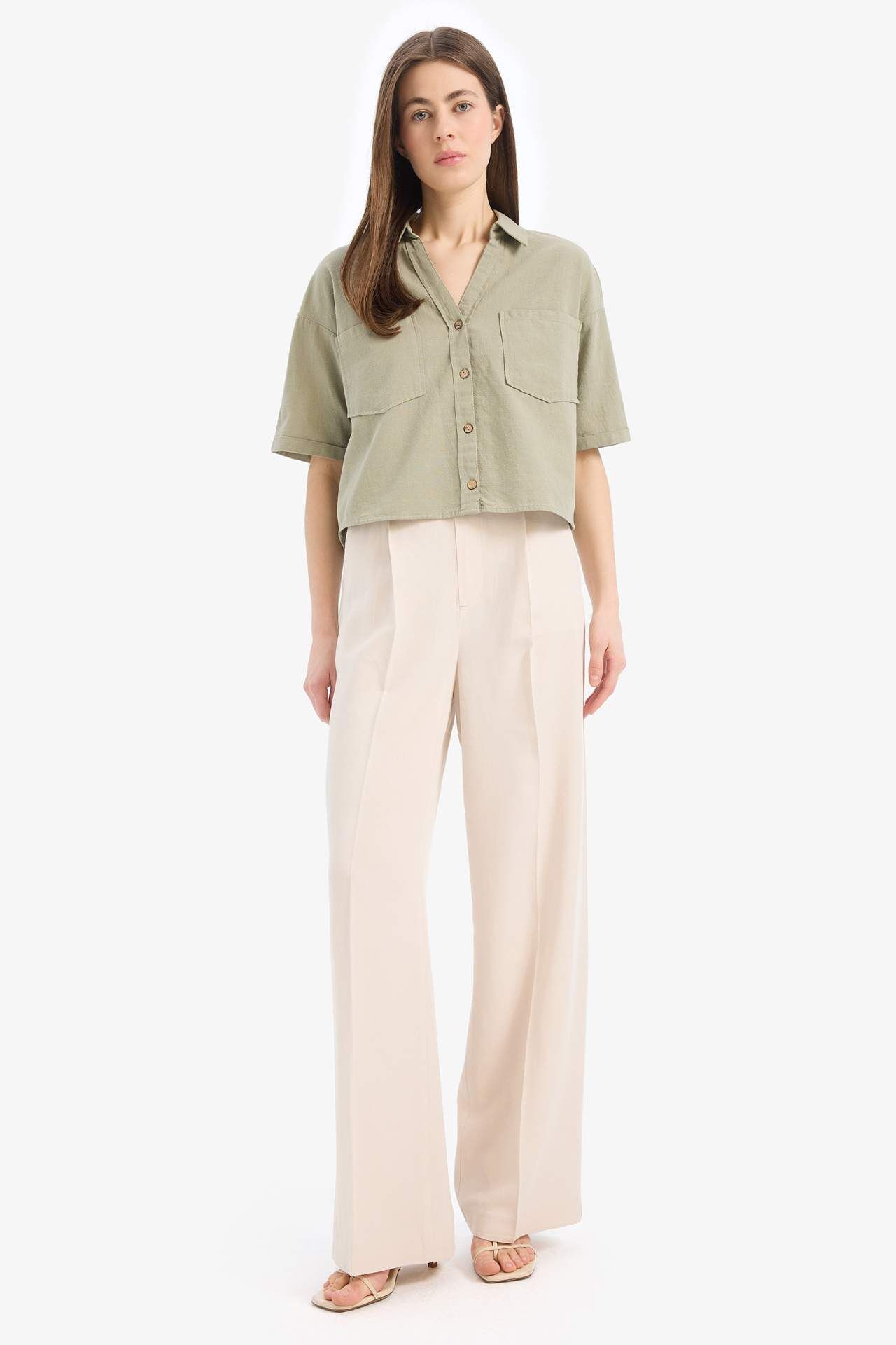 DeFacto Boxy Fit Basic Düz Kısa Kollu Gömlek V2523AZ25SPKH461