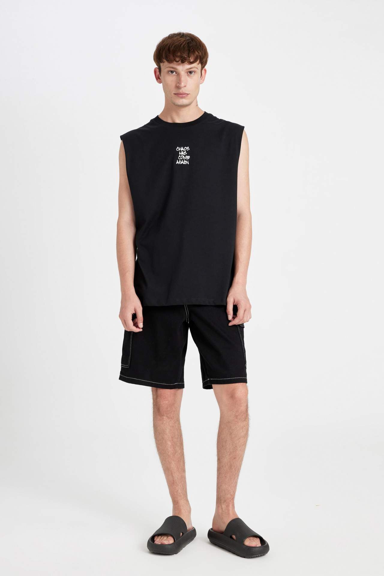 DeFacto Boxy Fit Baskılı Bisiklet Yaka Atlet C5053AX24HSBK81