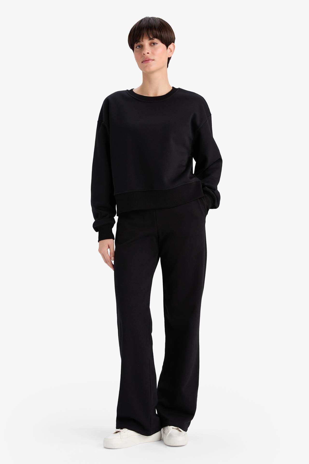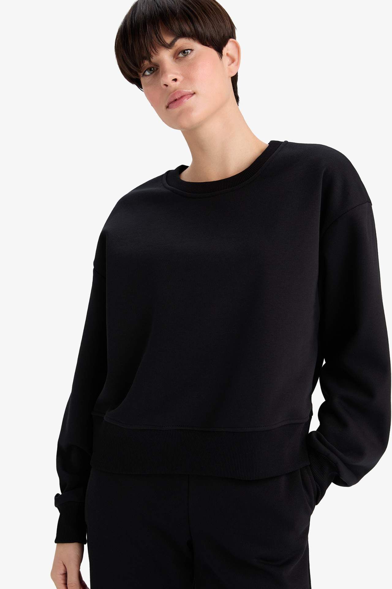 Boxy Fit Bisiklet Yaka Basic Düz Sweatshirt B8568AX25AUBK81