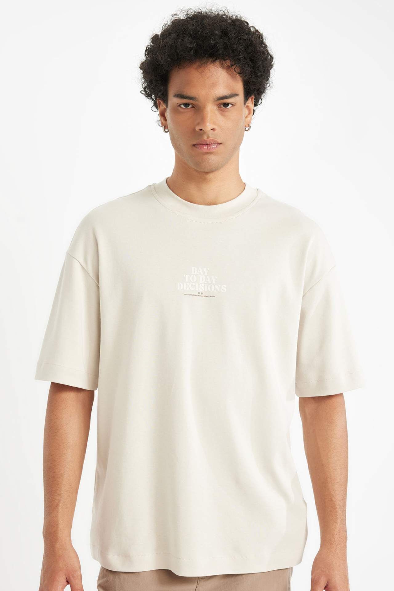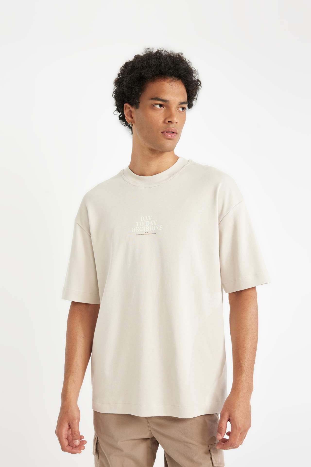 DeFactoFit Boxy Fit Bisiklet Yaka Baskılı Ağır Kumaş Kısa Kollu Tişört C7054AX24AUBG721