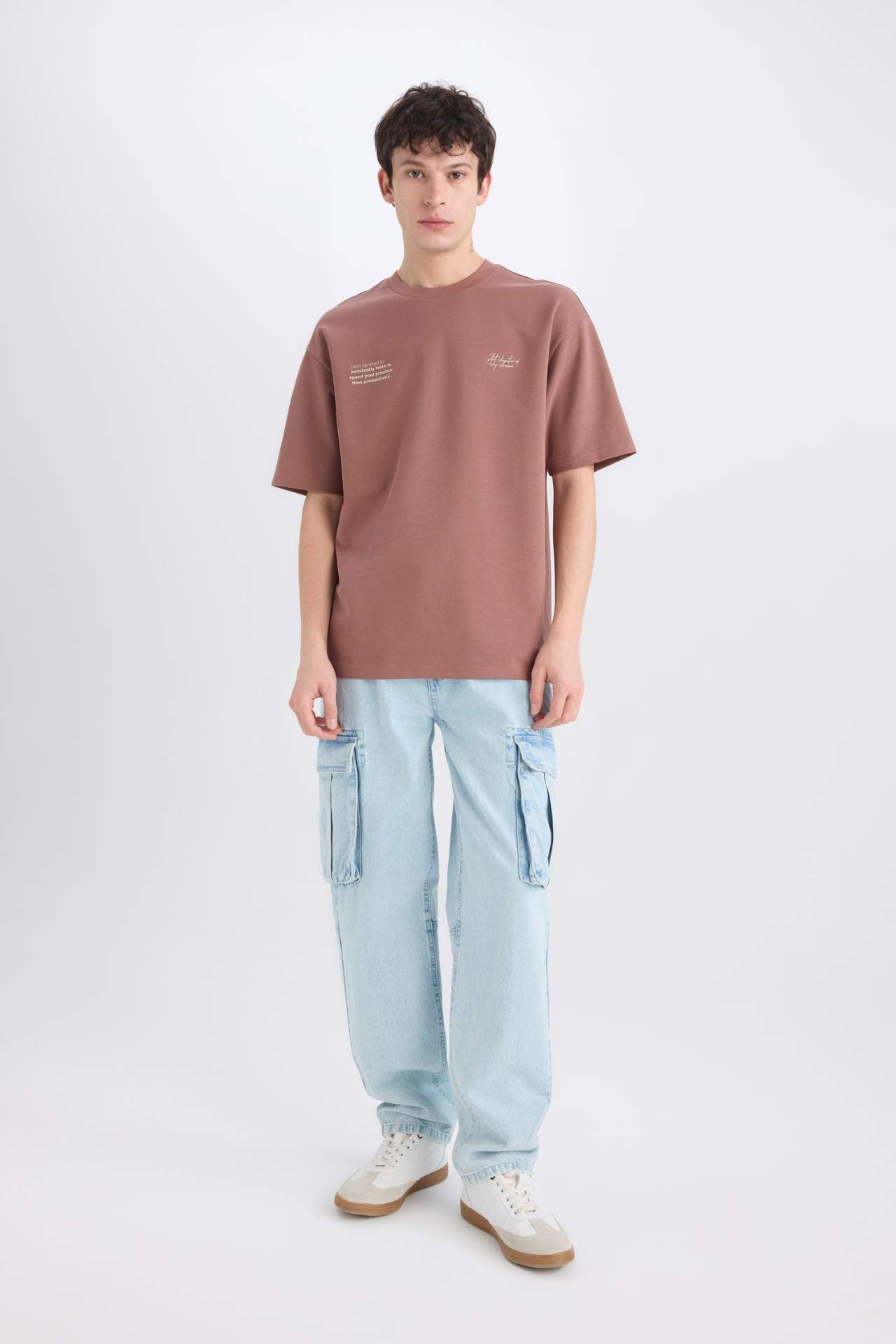 DeFacto Boxy Fit Bisiklet Yaka Baskılı Kısa Kollu Ağır Kumaş Tişört E0574AX25SMBN307