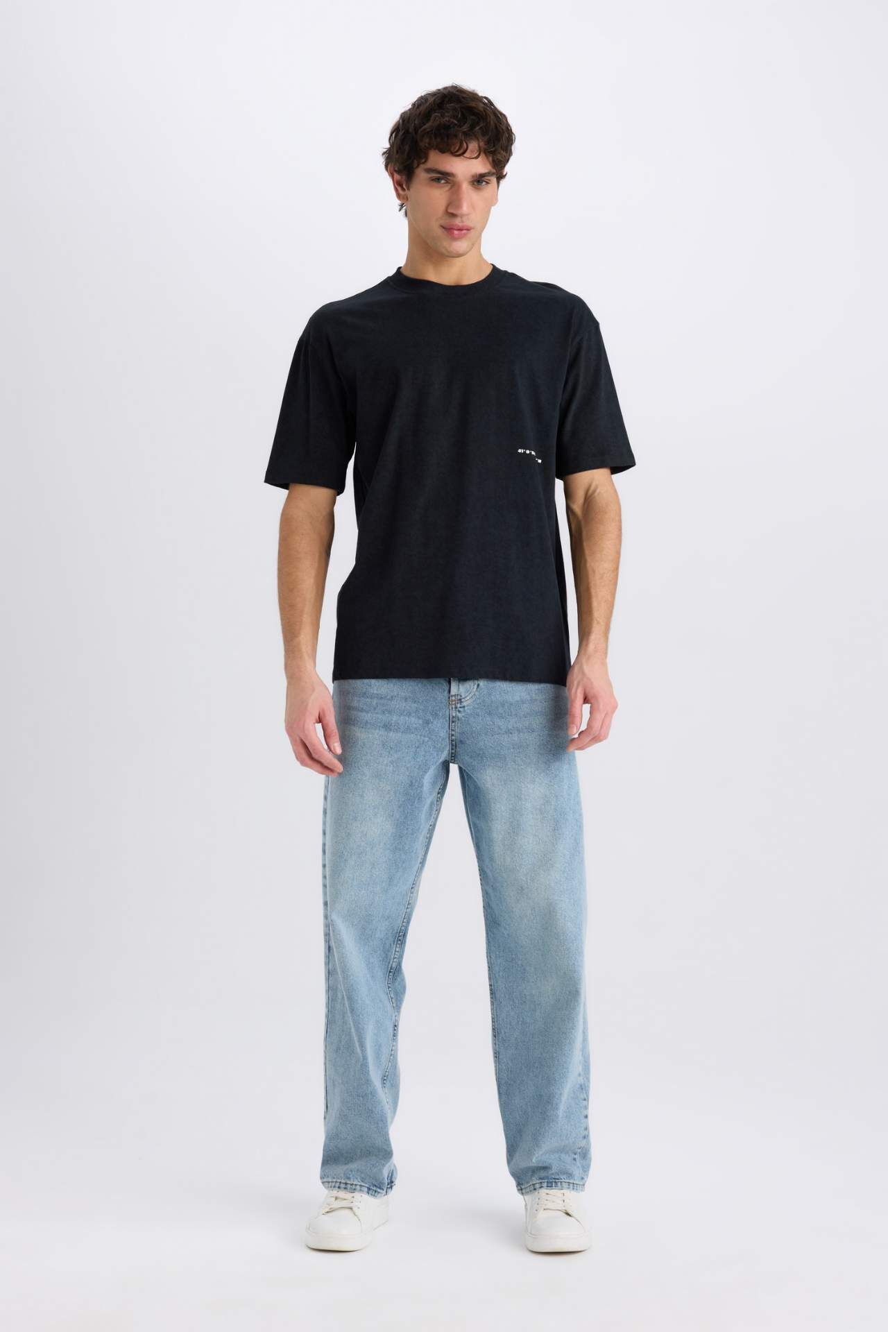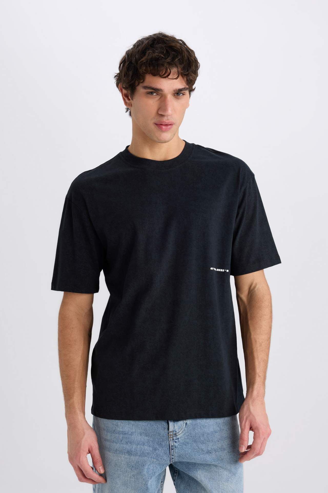 DeFacto Boxy Fit Bisiklet Yaka Baskılı Kısa Kollu Tişört C2138AX25SPBK81