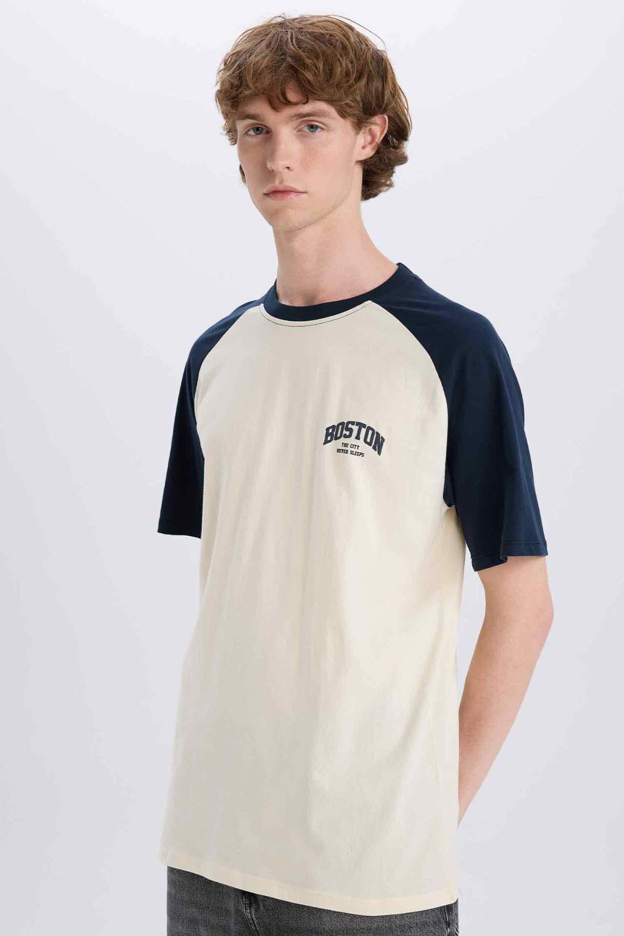 DeFacto Boxy Fit Bisiklet Yaka Baskılı Kısa Kollu Tişört D5569AX25SPNV82