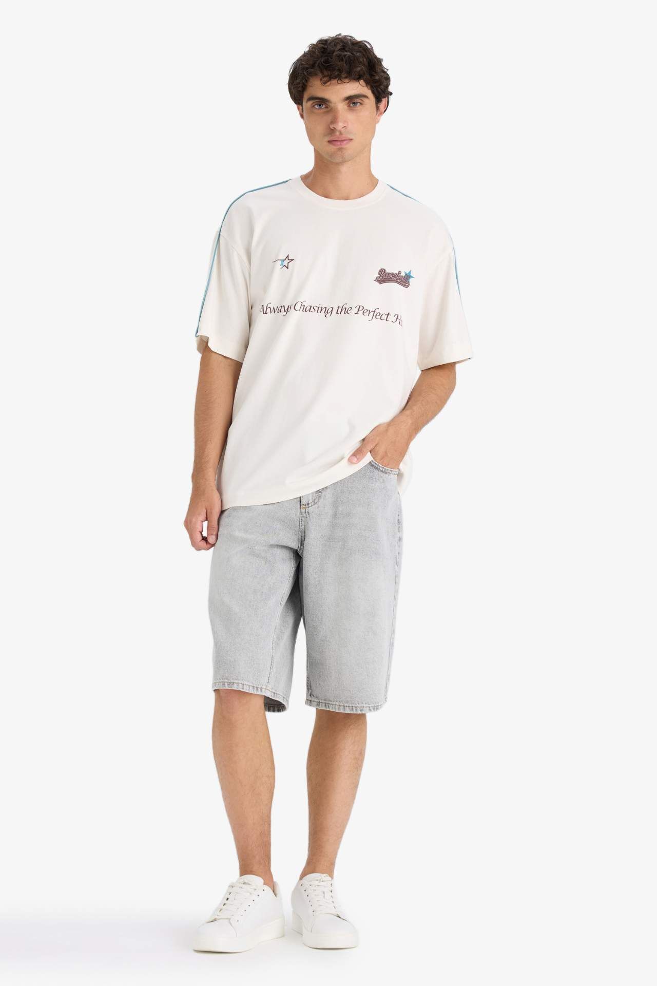 DeFacto Boxy Fit Bisiklet Yaka Baskılı Kısa Kollu Tişört F5503AX25HSER118