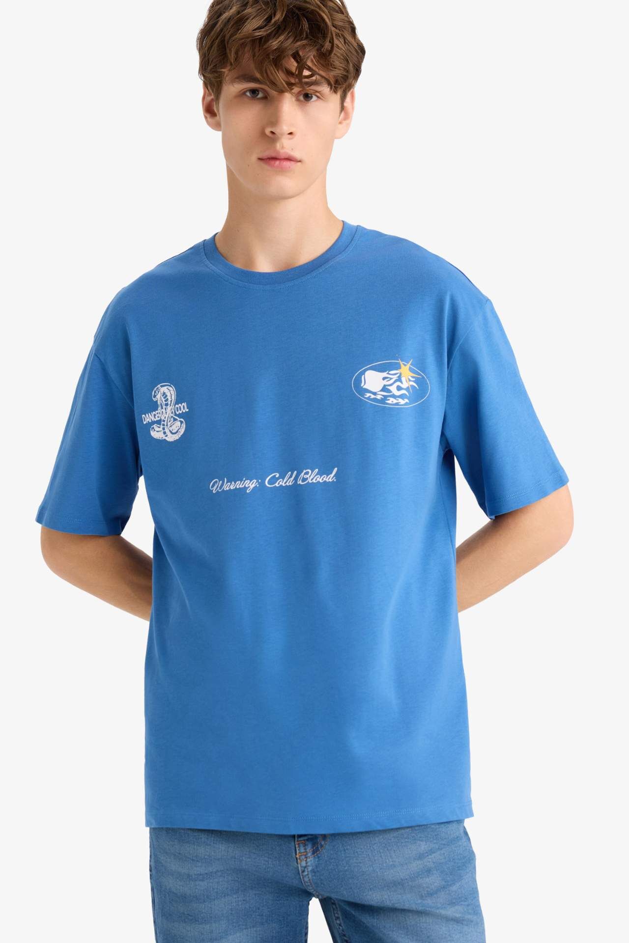 DeFacto Boxy Fit Bisiklet Yaka Baskılı Kısa Kollu Tişört F8594AX25HSBE410