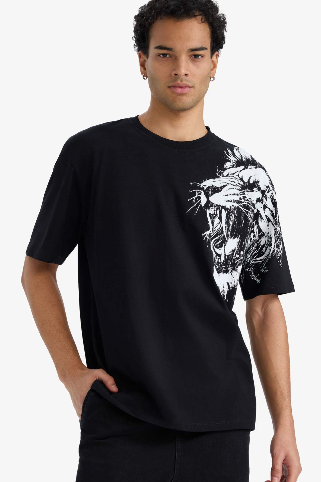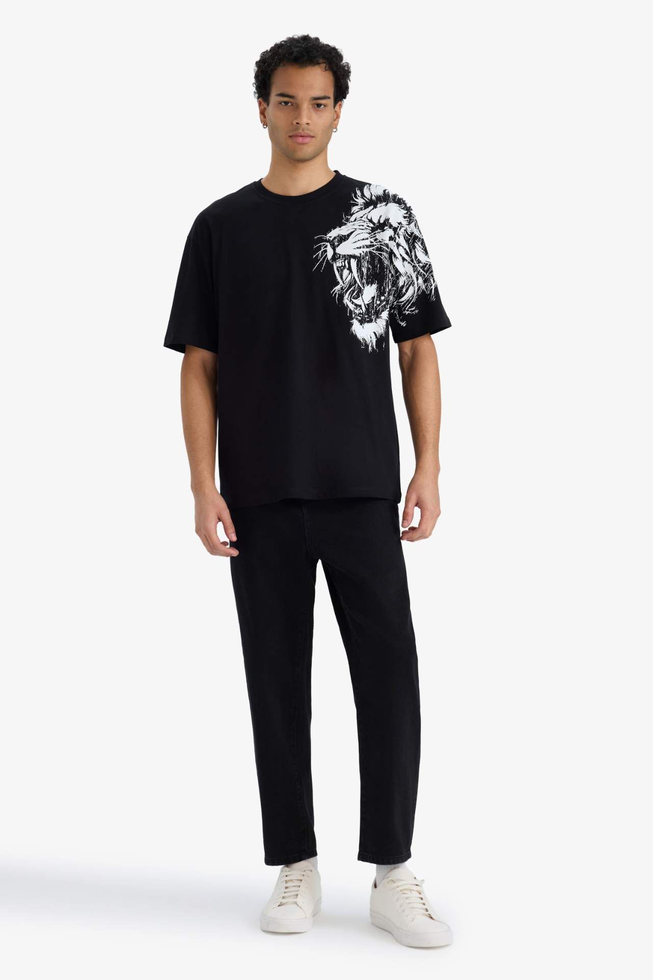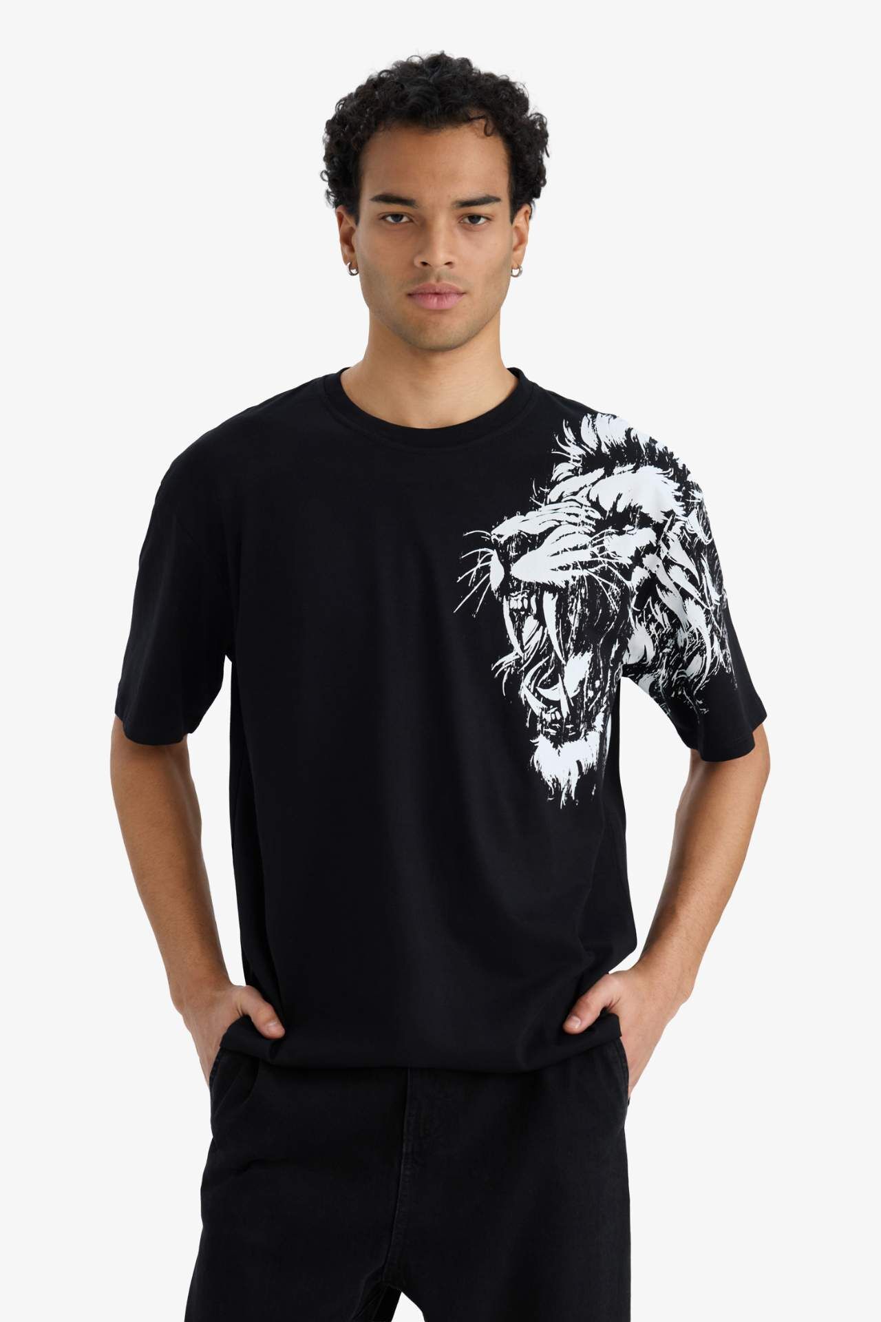 Boxy Fit Bisiklet Yaka Baskılı Kısa Kollu Tişört F8648AX25AUBK81