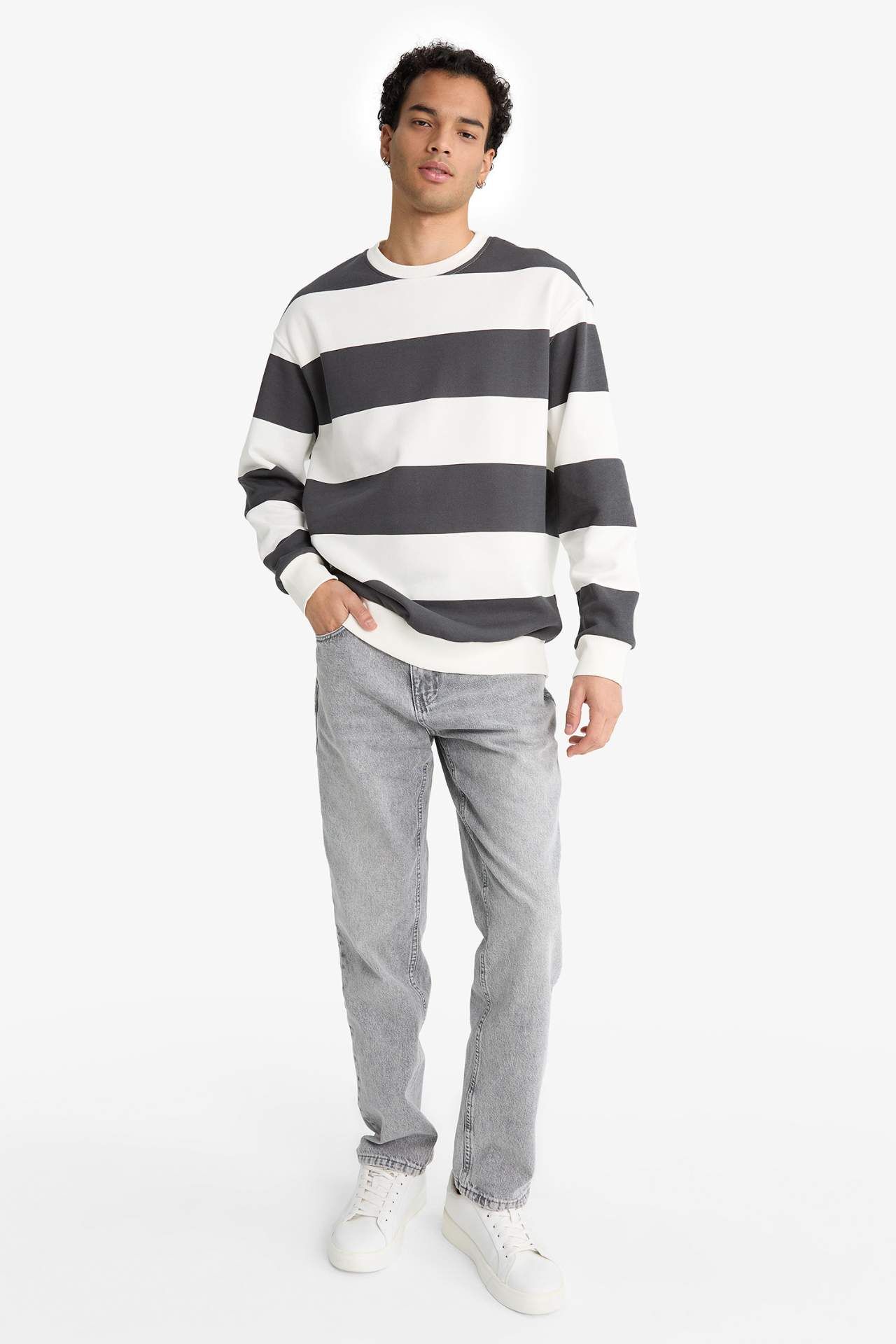 Boxy Fit Bisiklet Yaka Çizgili Sweatshirt