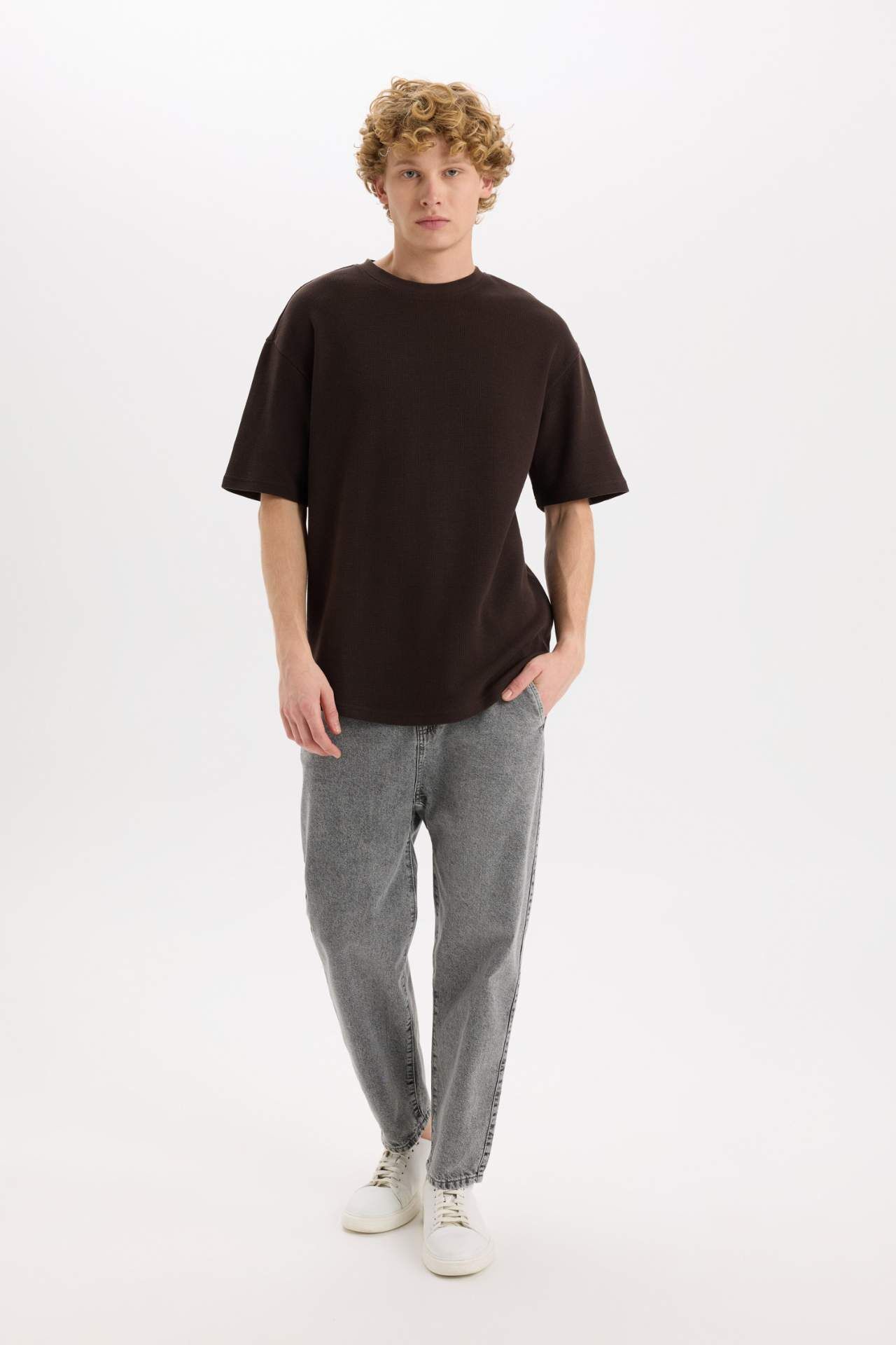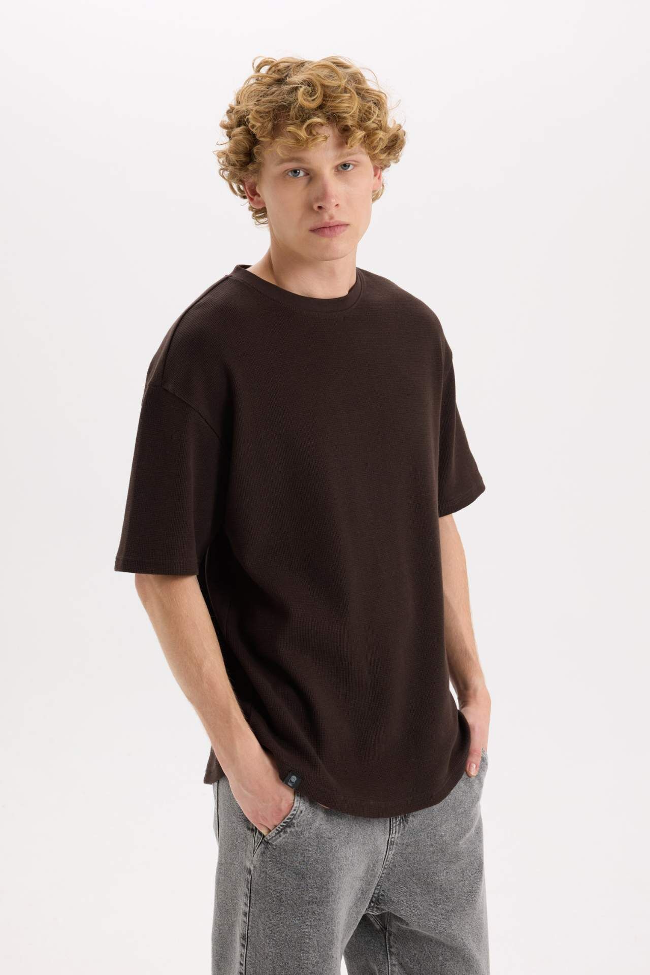 DeFacto Boxy Fit Bisiklet Yaka Kısa Kollu Basic Düz Waffle Tişört B4443AX25SPBN337